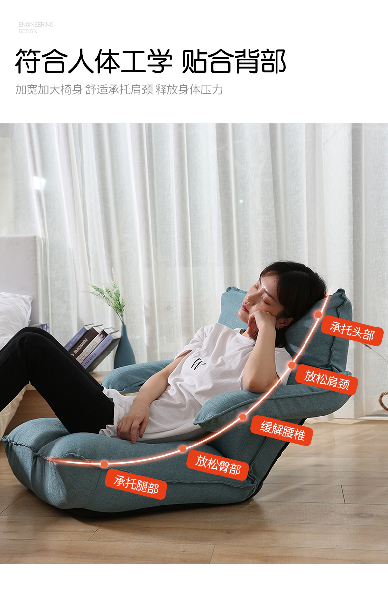 古雷诺斯 懒人椅 懒人沙发单人迷你卧室宿舍可拆洗可折叠椅子 N699-01-三挡可调灰色+搁脚凳...