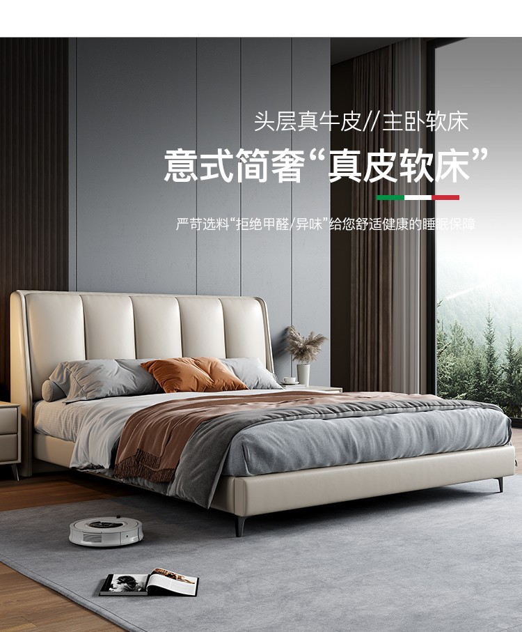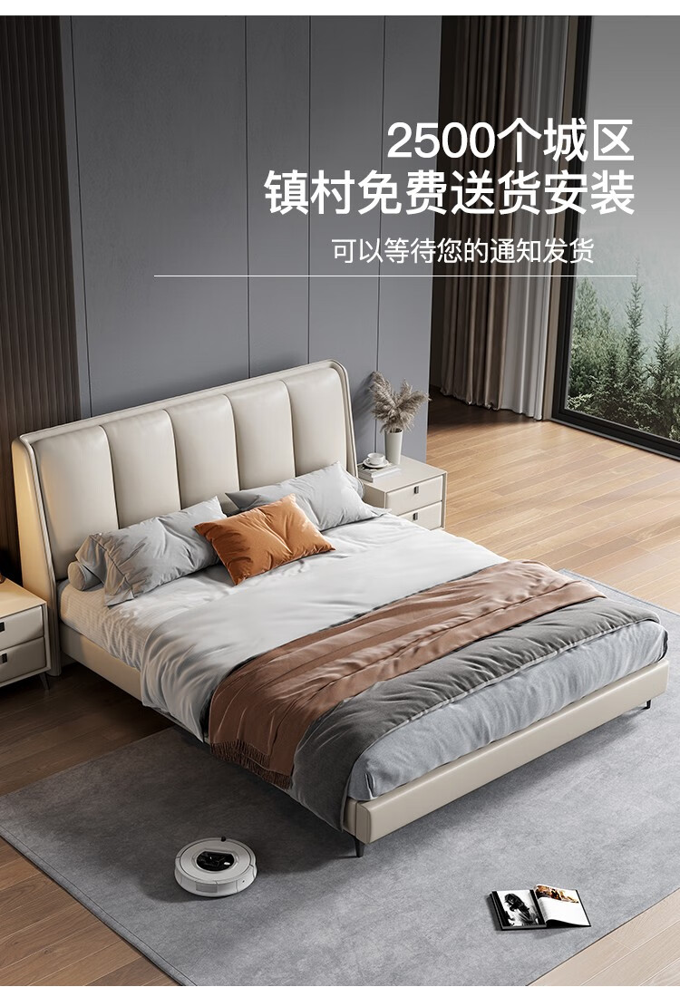 奥左 真皮双人床意式轻奢极简北欧主卧头层牛皮1.8米1.5米结婚家用大软包床 实木架子床 1.5*2米真皮床【进口松木框架+高回弹海绵靠包】奥左 真皮双人床意式轻奢极简北欧主卧头层牛皮1.8米1.5米结婚家用大软包床 实木架子床 1.5*2米真皮床【进口松木框架+高回弹海绵靠包】...