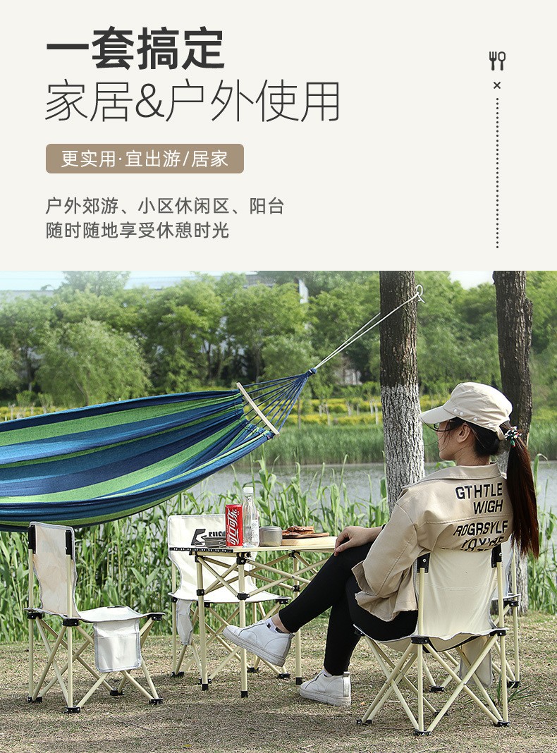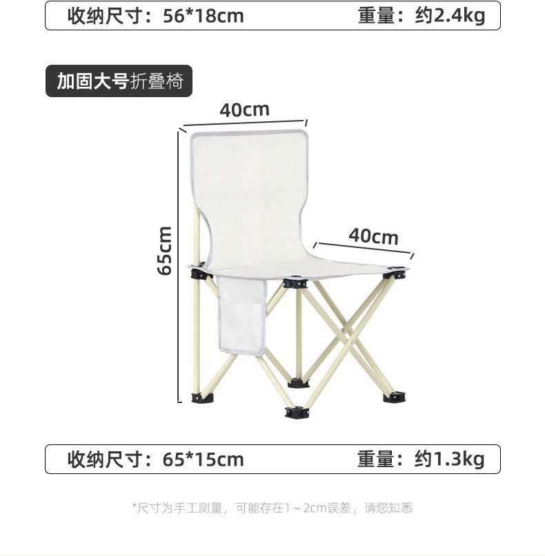 奥伦福特 户外折叠椅便携式沙滩椅野餐露营靠背椅写生椅便携式院子休闲椅子 大号克米特-黑色...