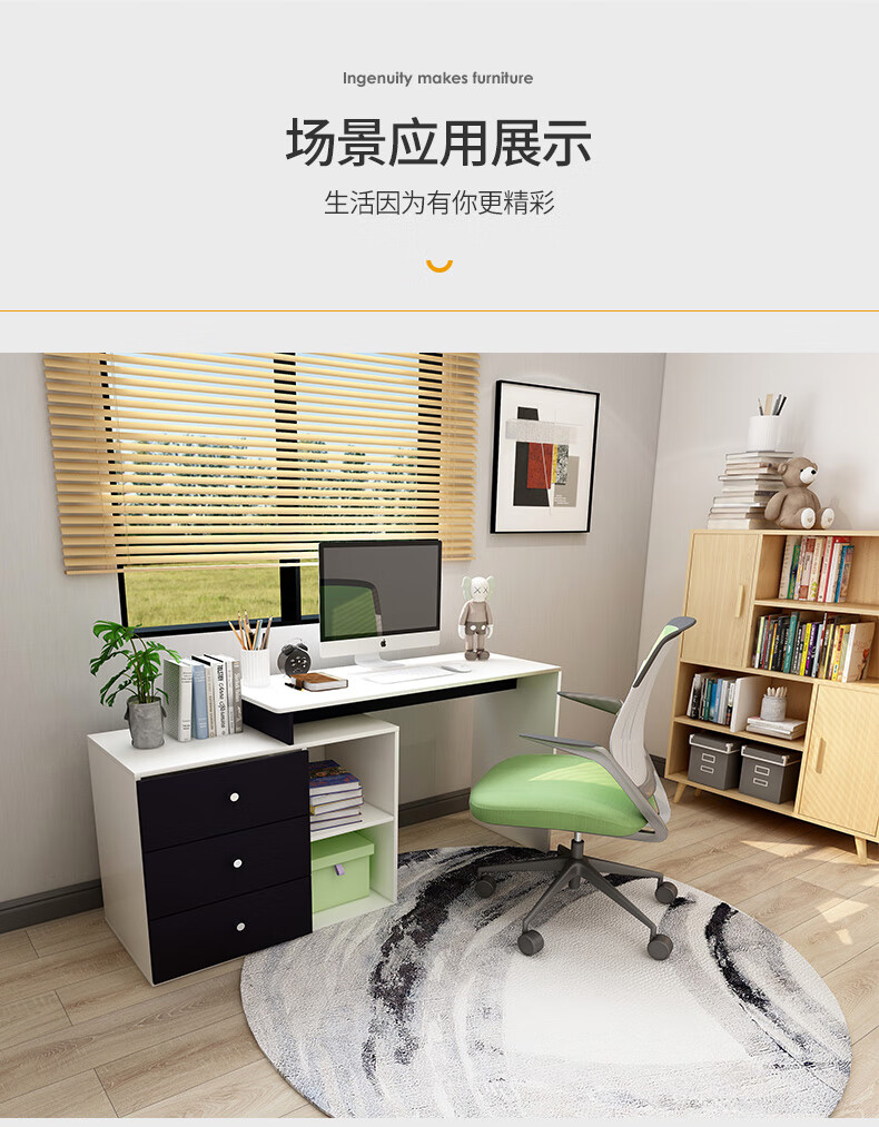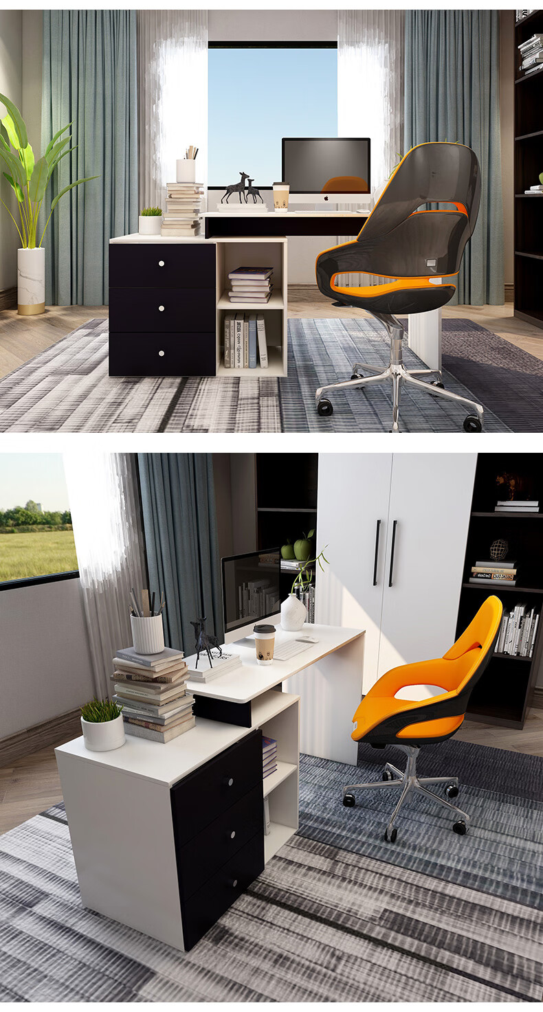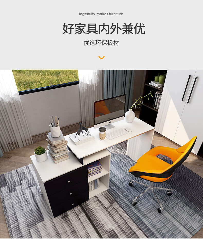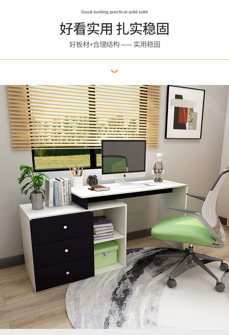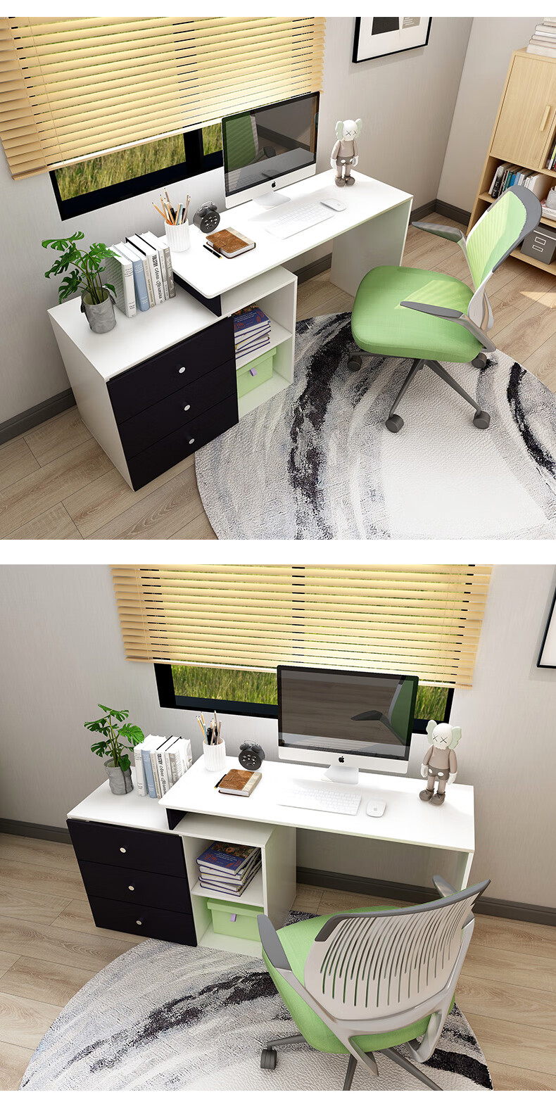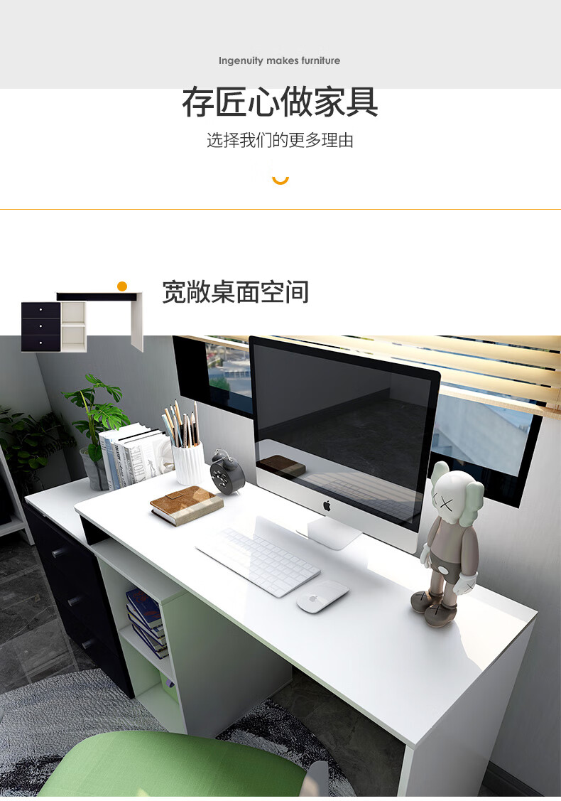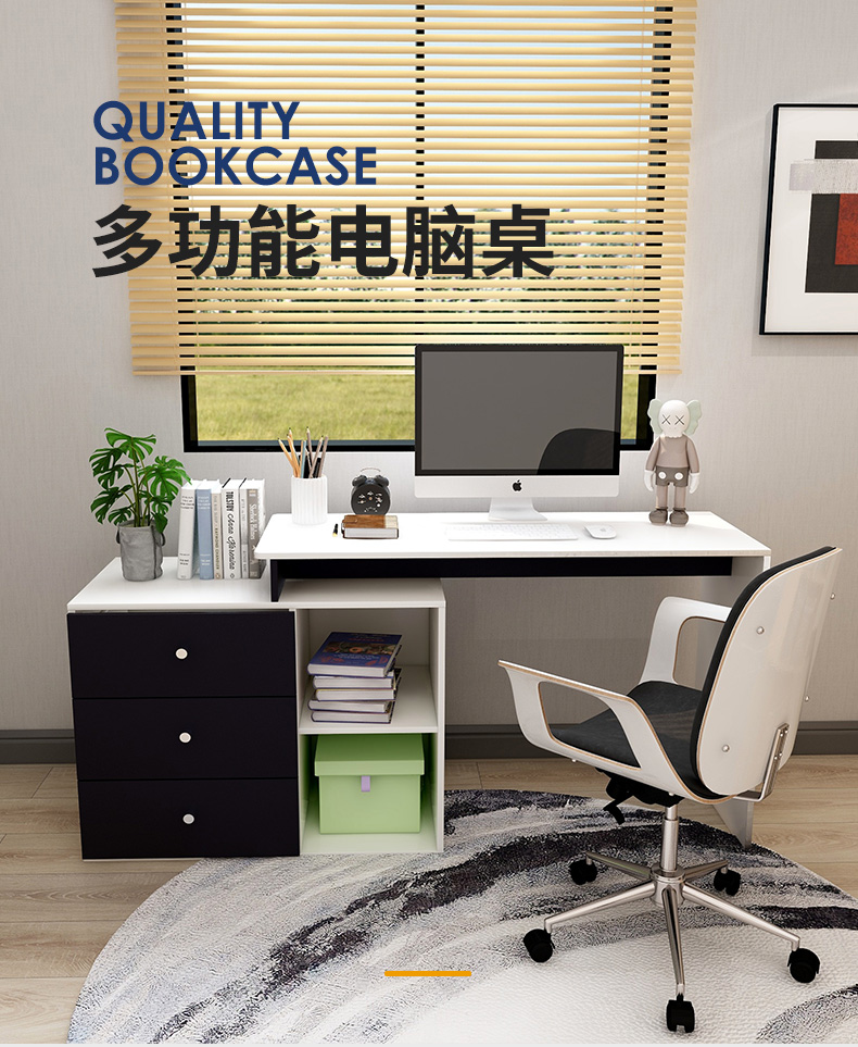 吉友爱书桌书架一体学生家用电脑桌台式写字桌桌书房卧室轻奢大桌子工作台 【简约三抽款】 暖白色120*60*75CM...