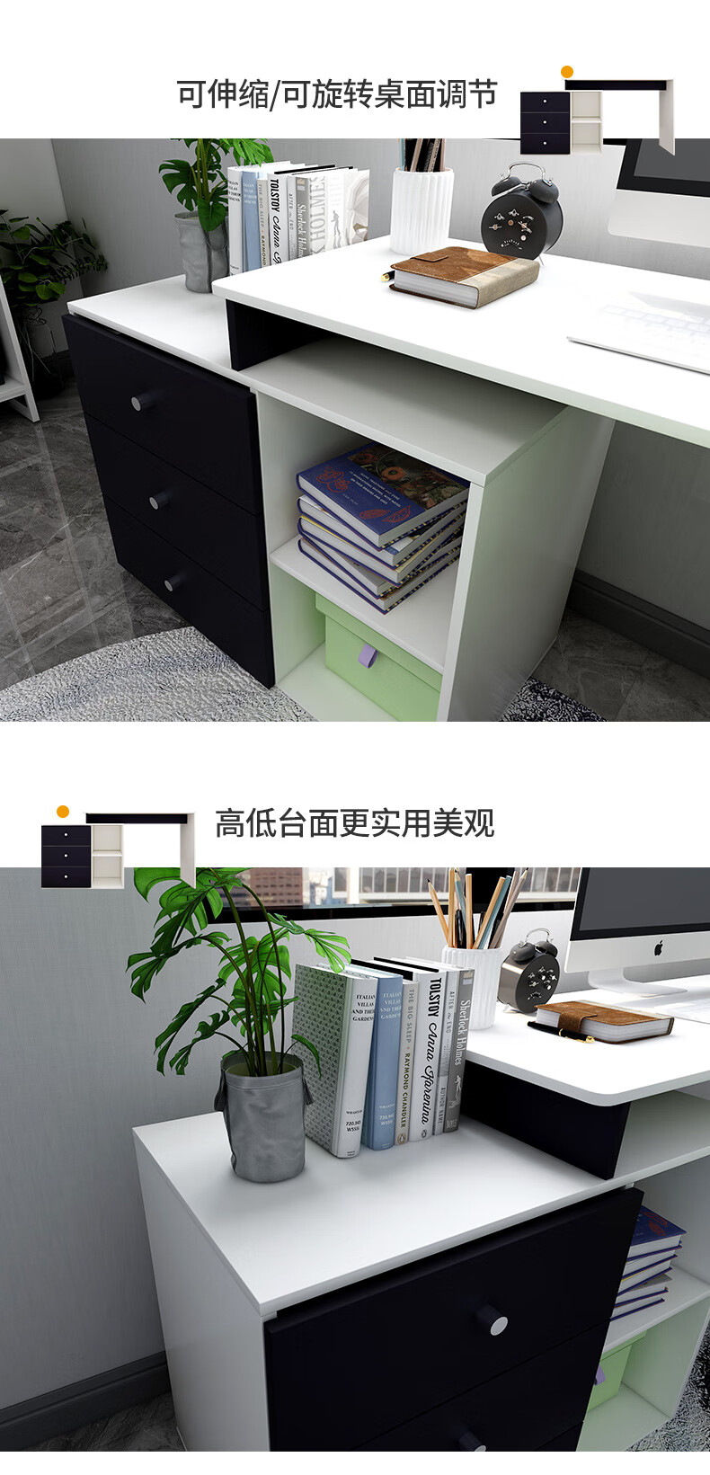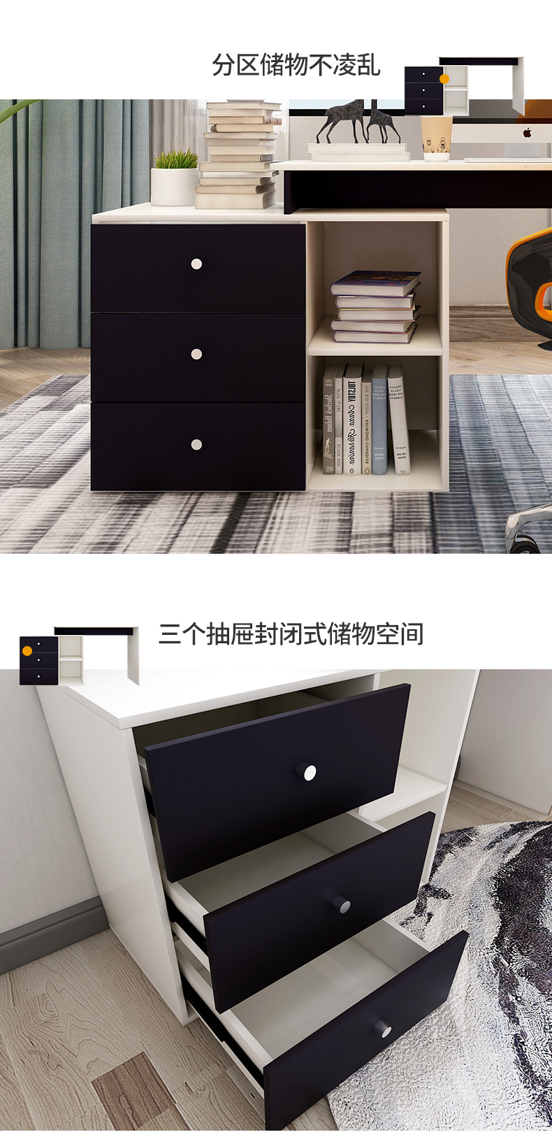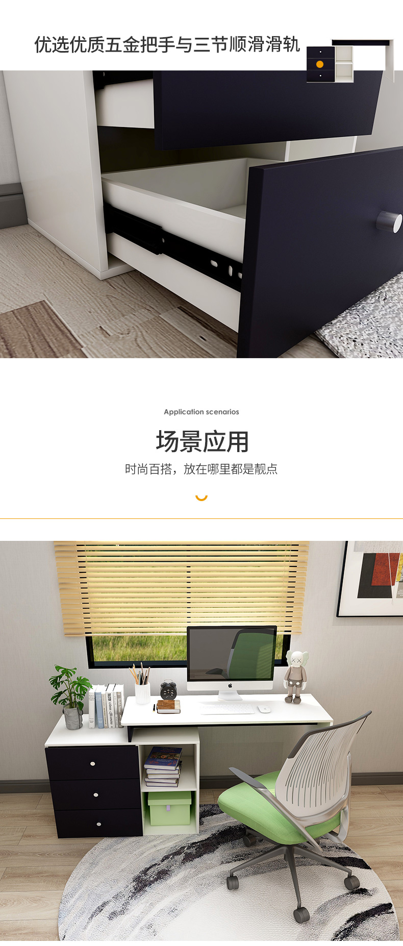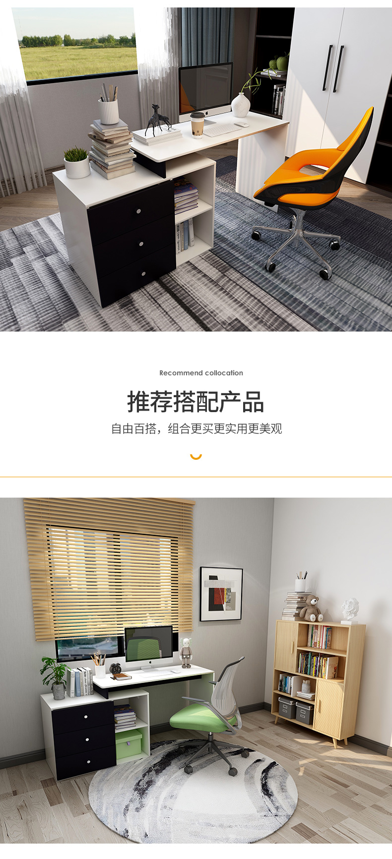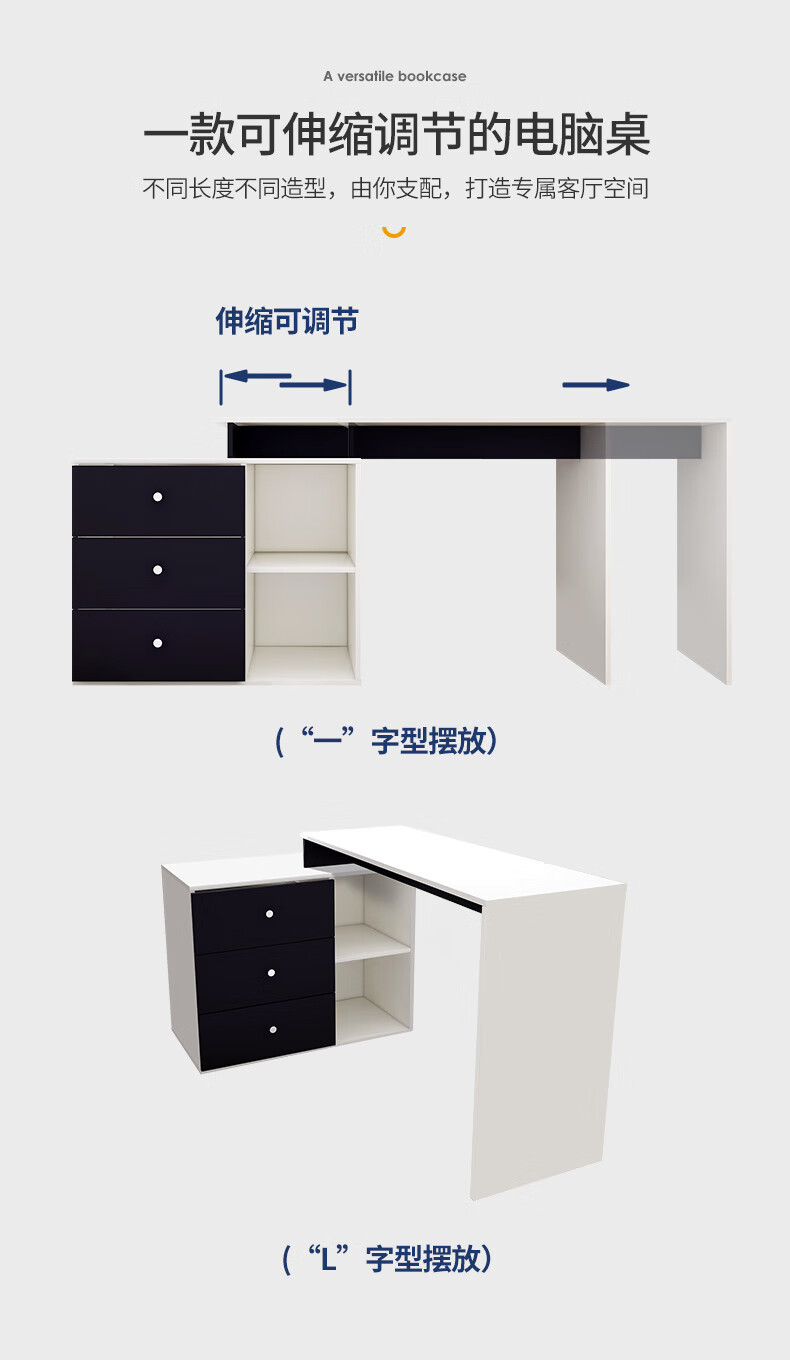 吉友爱书桌书架一体学生家用电脑桌台式写字桌桌书房卧室轻奢大桌子工作台 【简约三抽款】 暖白色120*60*75CM...