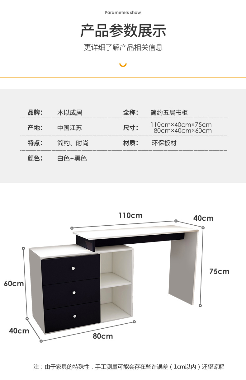 吉友爱书桌书架一体学生家用电脑桌台式写字桌桌书房卧室轻奢大桌子工作台 【简约三抽款】 暖白色120*60*75CM