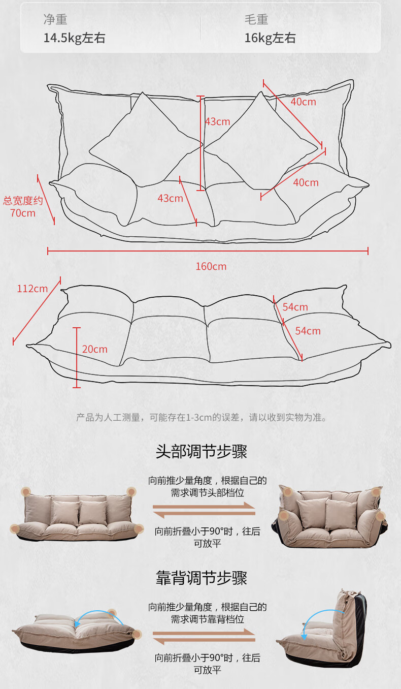 京东古雷诺斯 懒人椅 懒人沙发单人迷你卧室宿舍可拆洗可折叠椅子 N699-01-三挡可调灰色+搁脚凳 到手价:159元