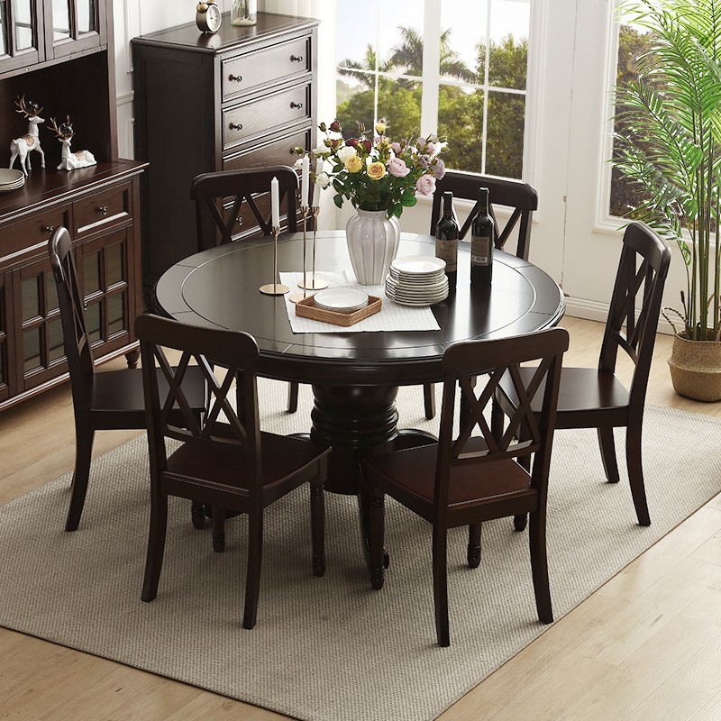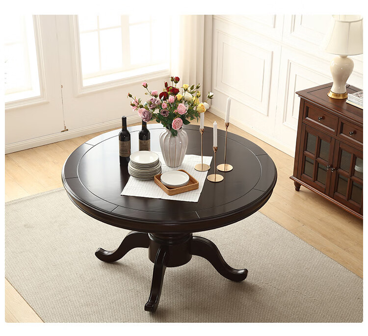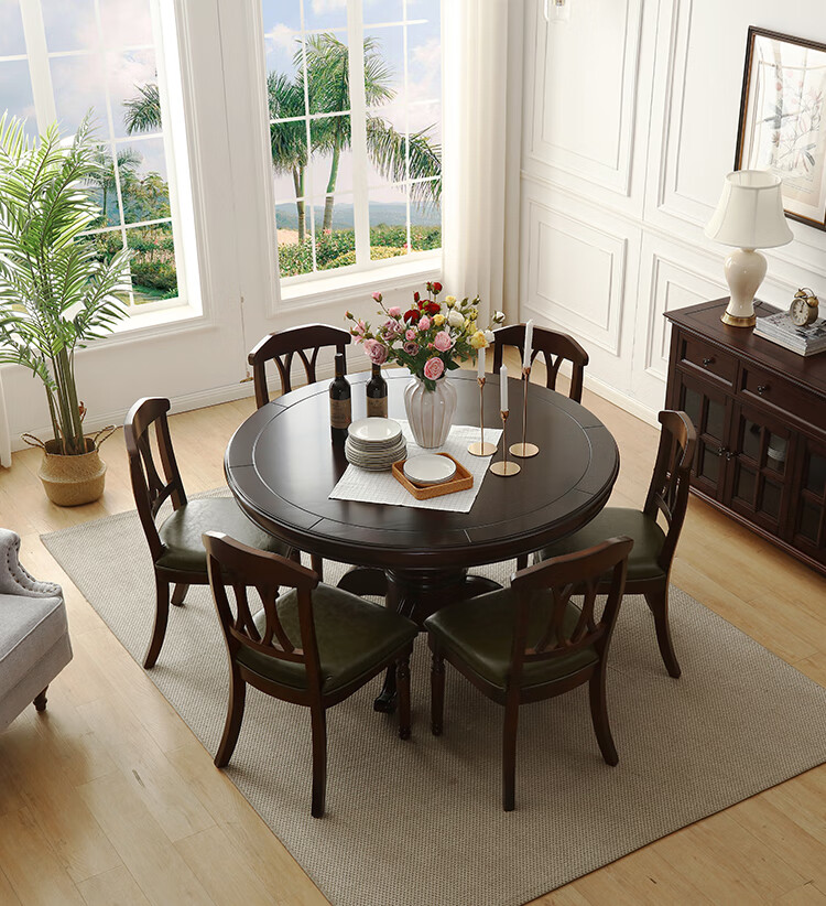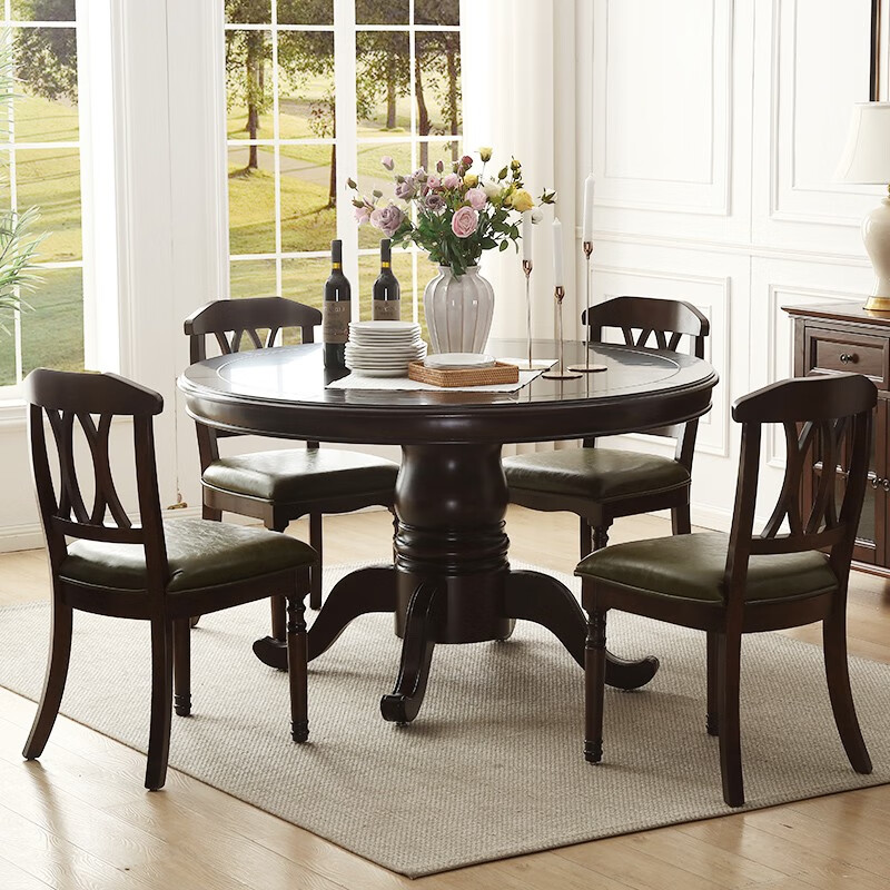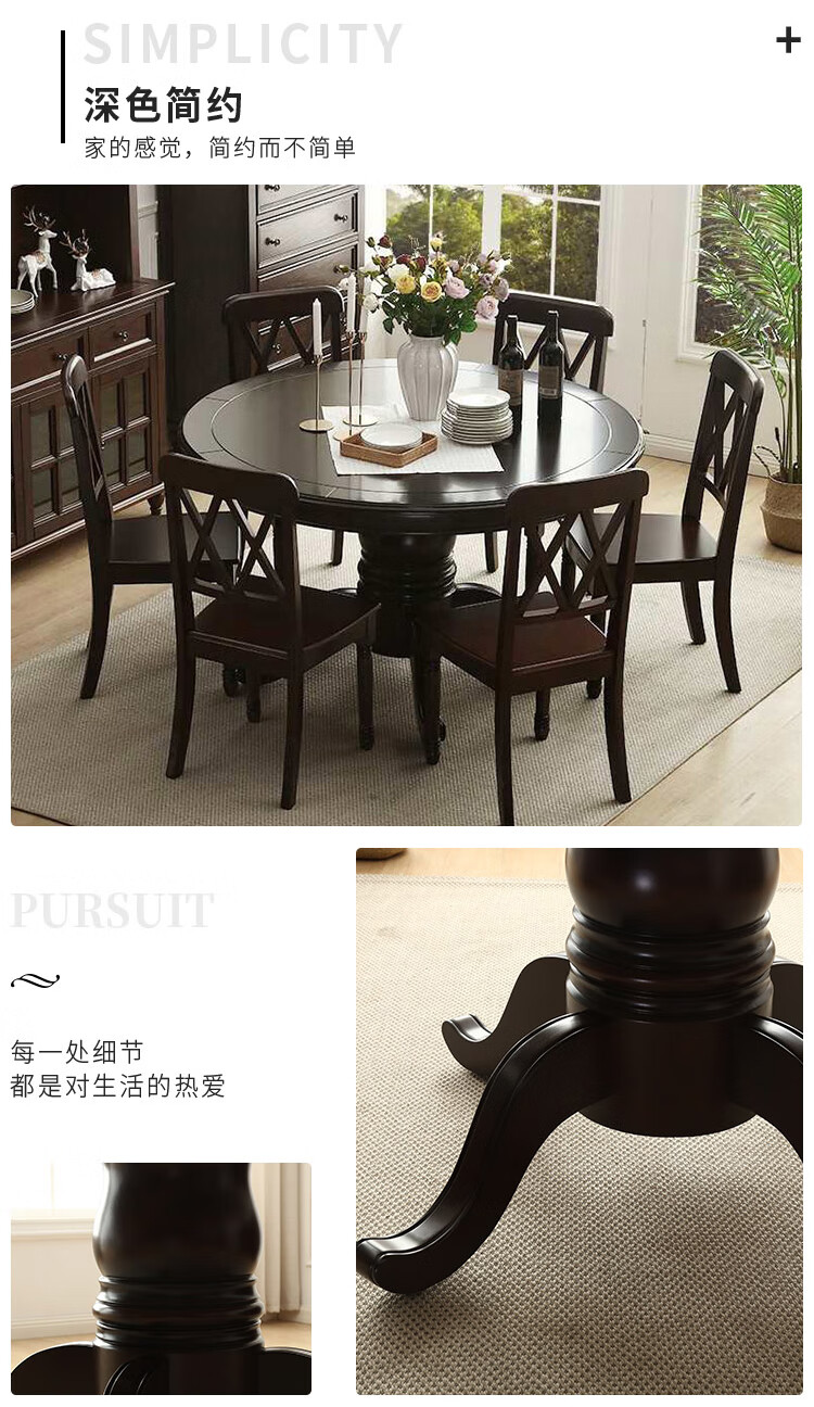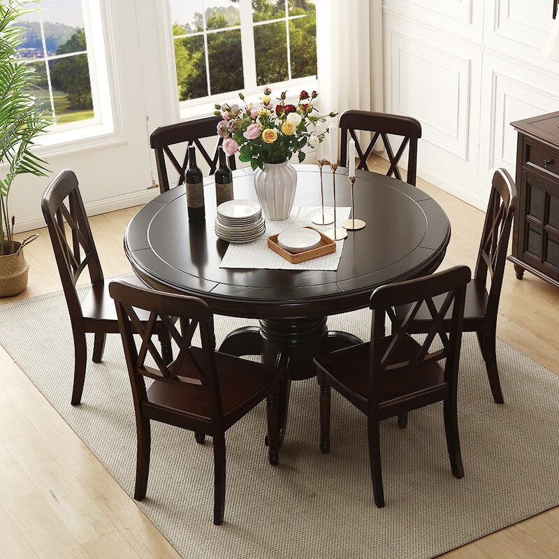 京东卡洛森餐桌 实木餐桌椅组合1.8米新中式酒店大圆桌带转盘家用圆形12人饭桌子 黑紫色(实木椅) 1.2米单桌(配0.8m转盘) 到手价:1580元