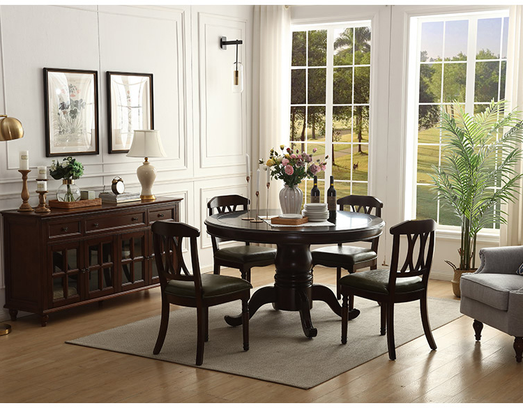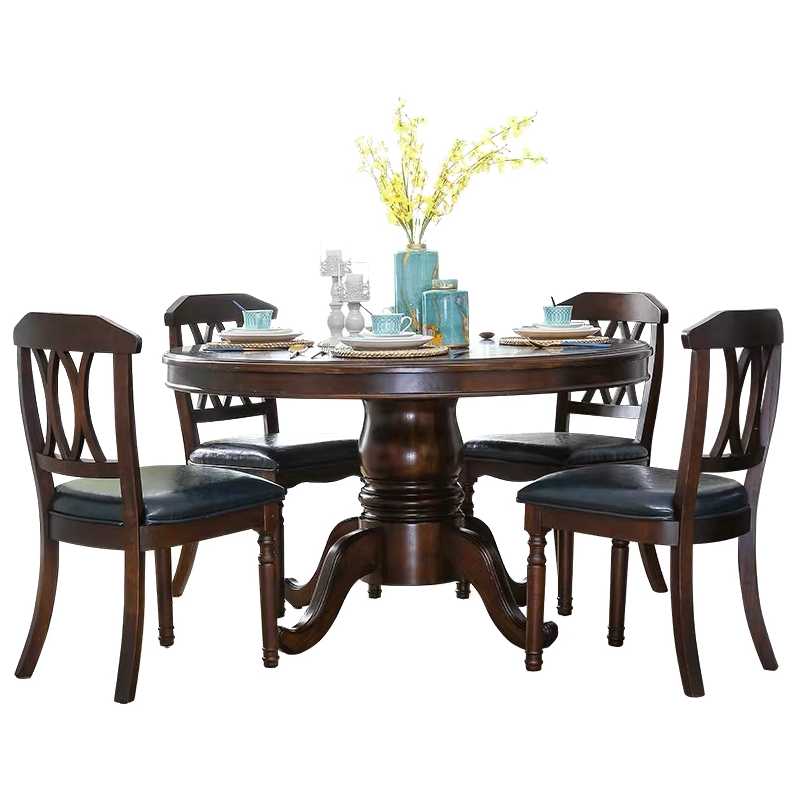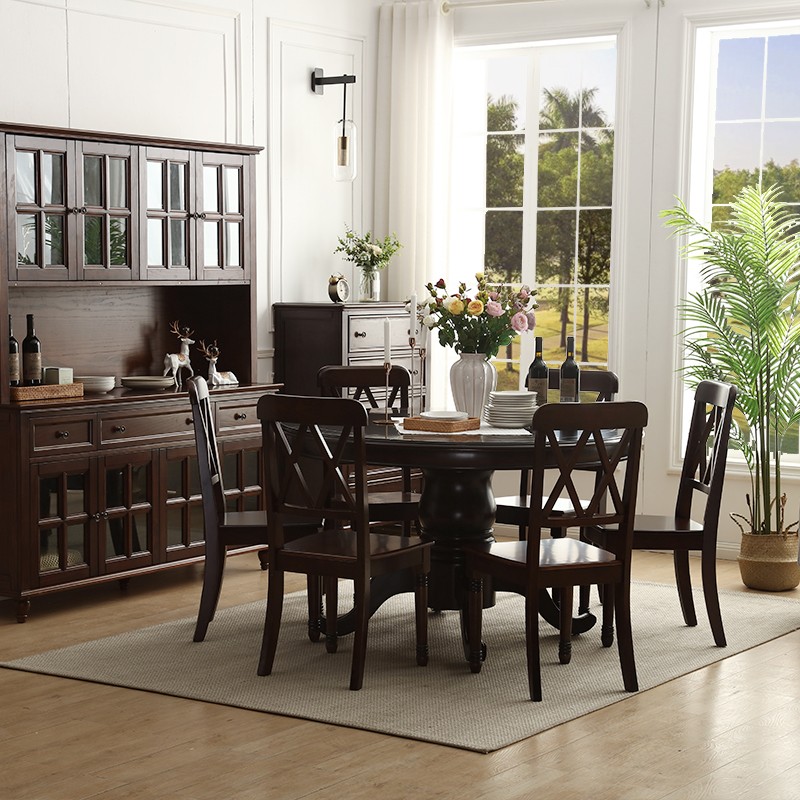 卡洛森餐桌 实木餐桌椅组合1.8米新中式酒店大圆桌带转盘家用圆形12人饭桌子 黑紫色(实木椅) 1.2米单桌(配0.8m转盘)...