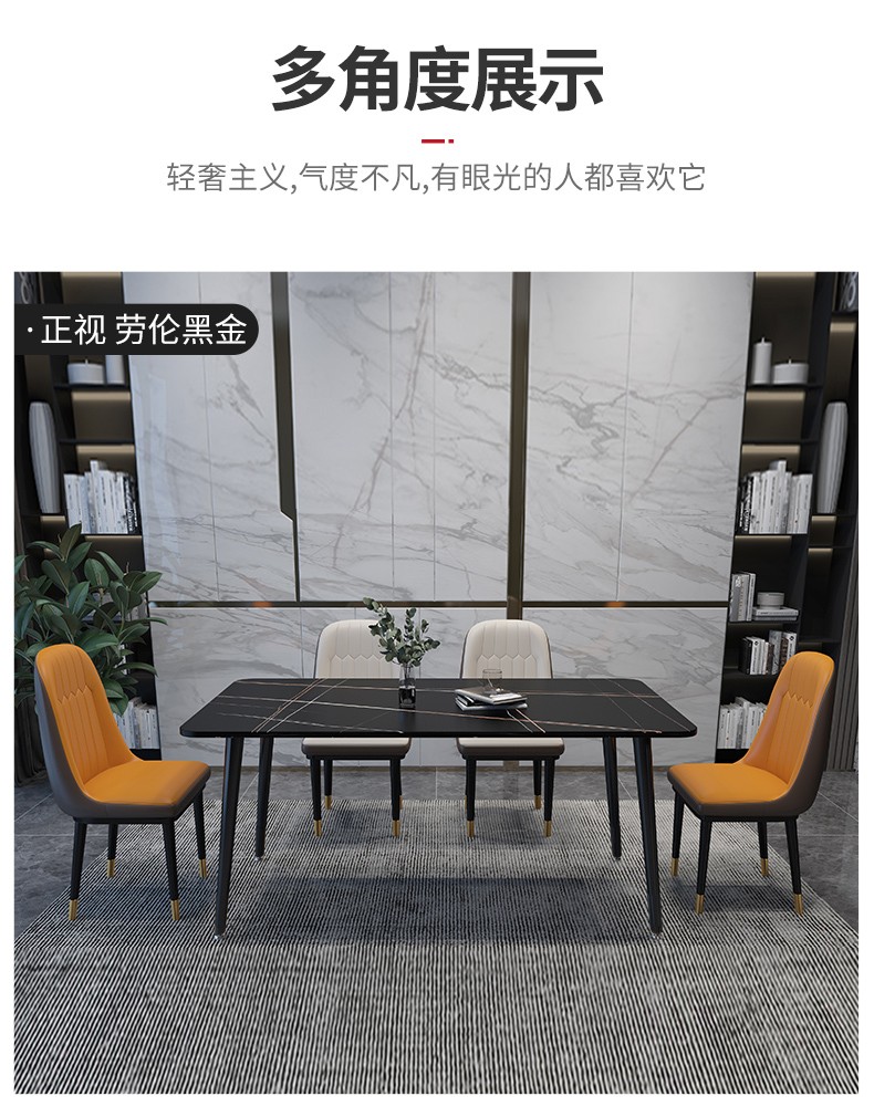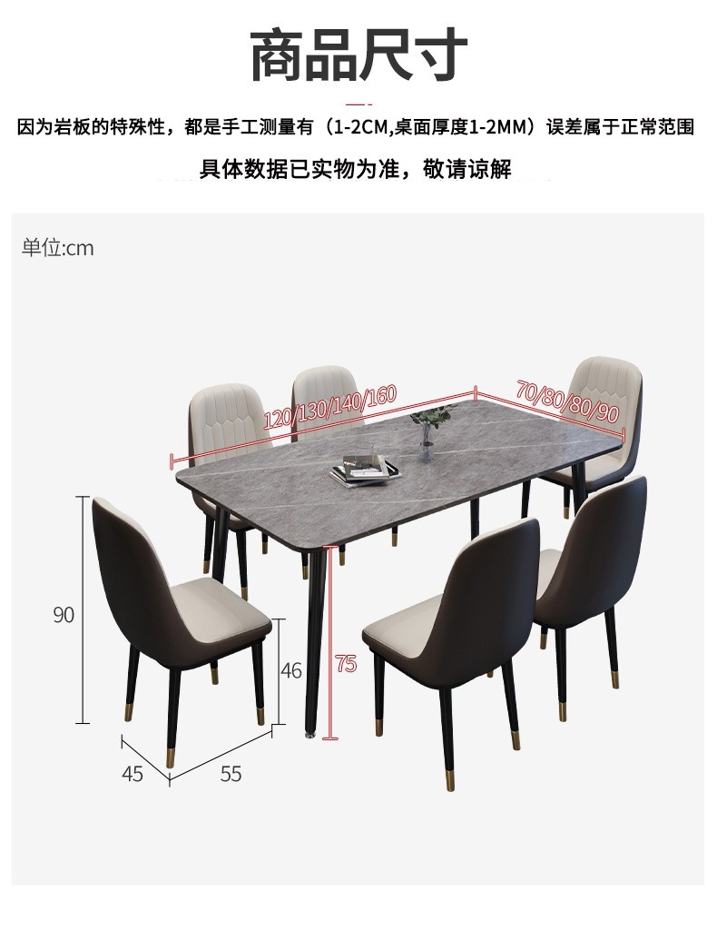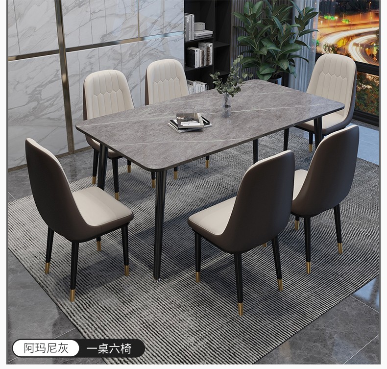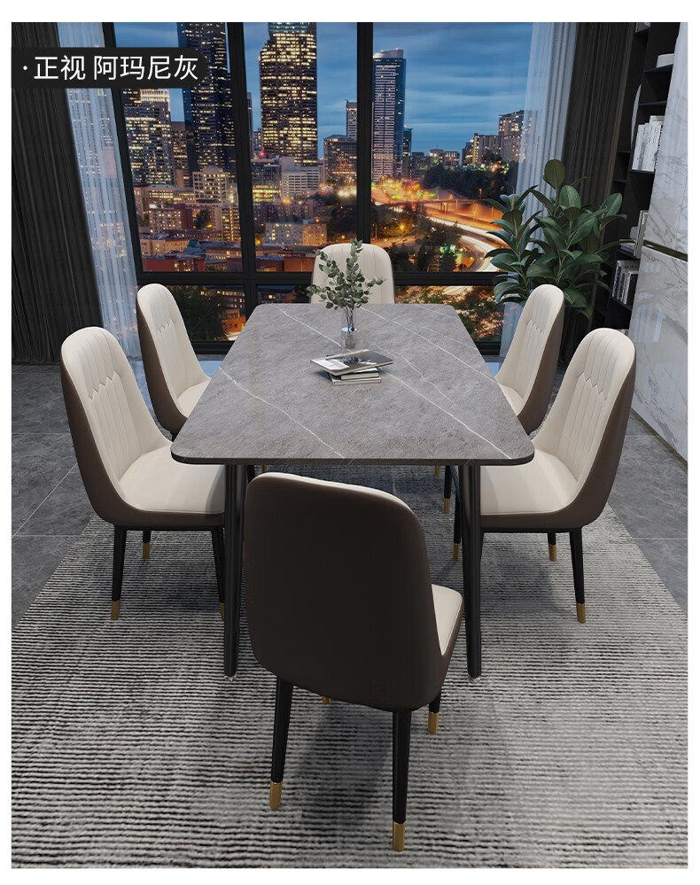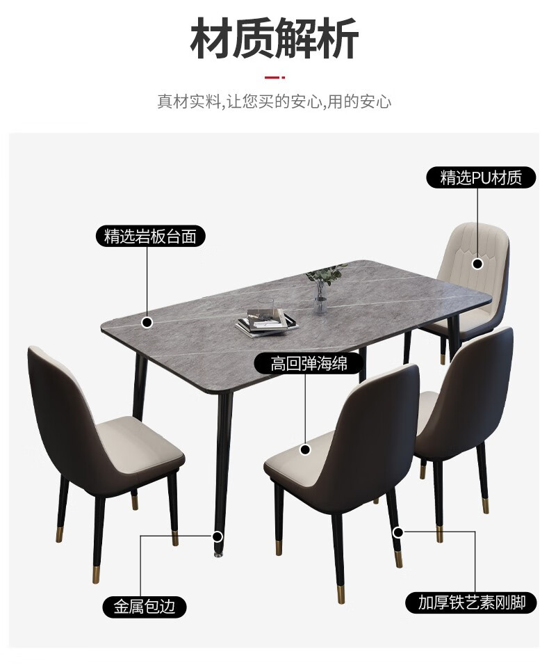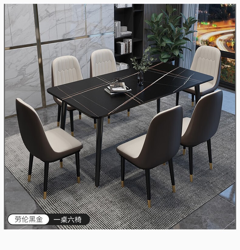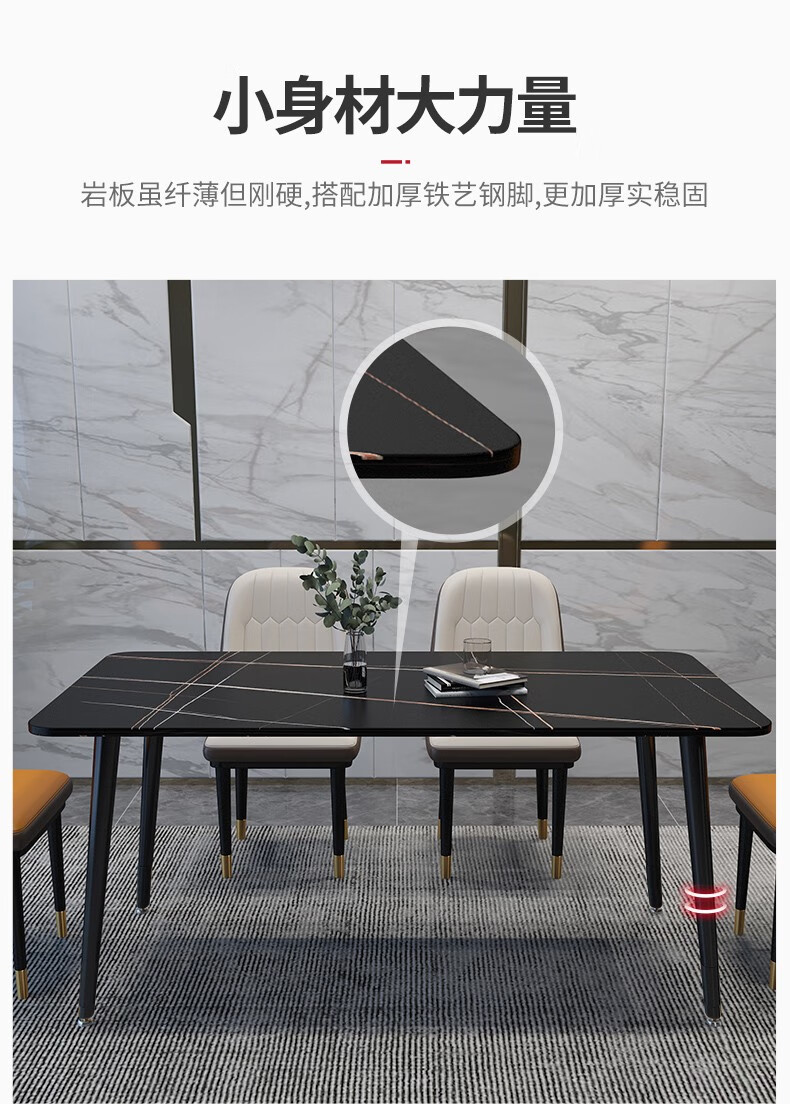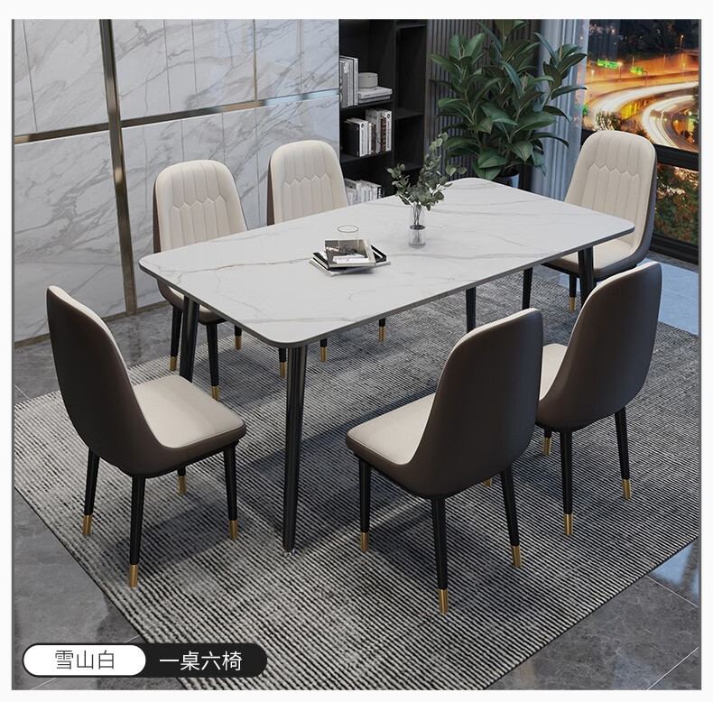 快乐之源 北欧大理石餐桌椅组合意式轻奢长方形现代简约岩板餐桌家用小户型 1.4米餐桌 单餐桌...