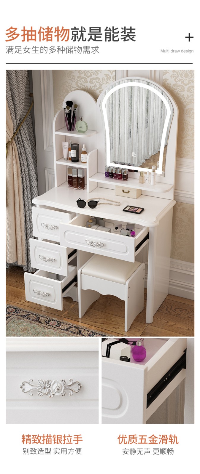 未知梳妆台怎么样?真实吐槽【未知梳妆台】评测质量怎么样?还值得入手吗?图文解析?感觉很好看,很结实,不晃,款式挺漂亮安装起来还是挺简单的这个价格买到挺值了梳妆台...
