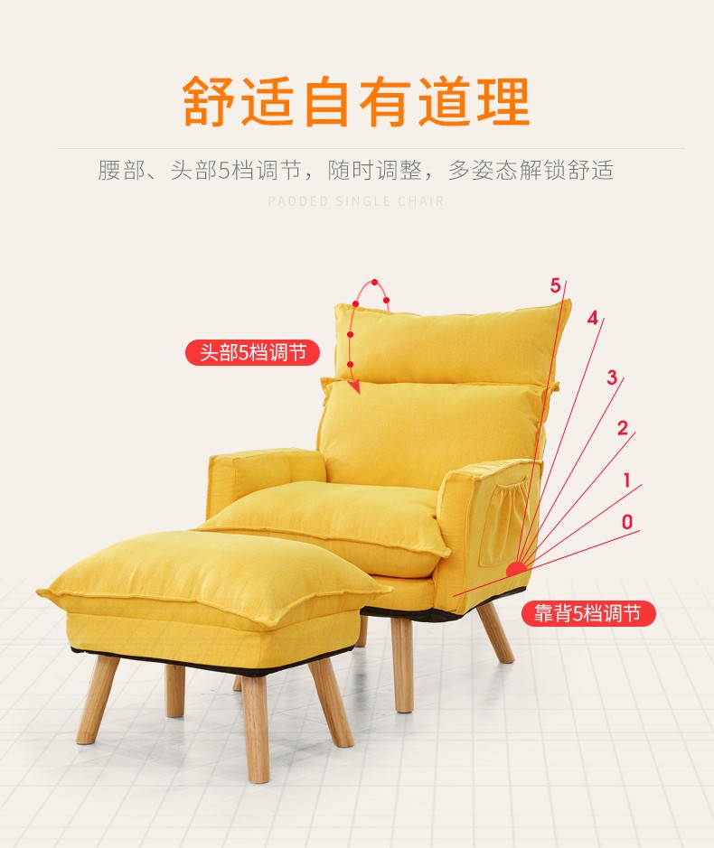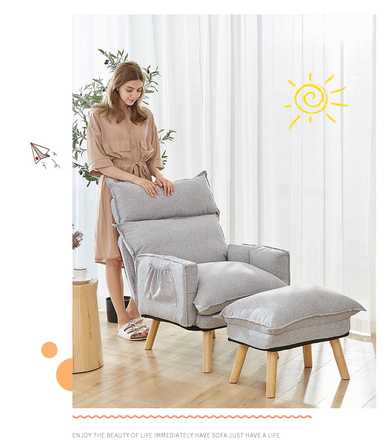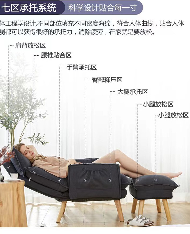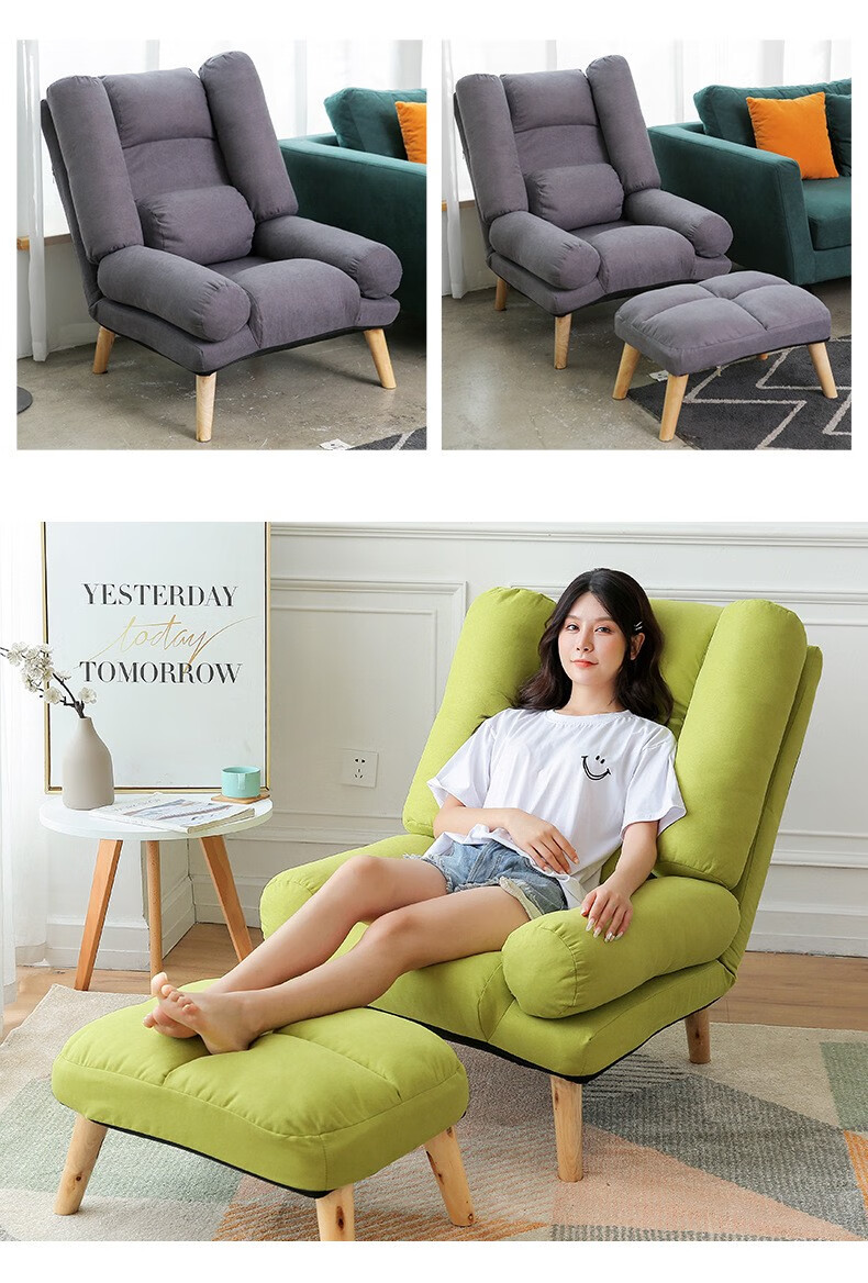 京东古雷诺斯 懒人椅 懒人沙发单人迷你卧室宿舍可拆洗可折叠椅子 N699-01-三挡可调灰色+搁脚凳 到手价:159元