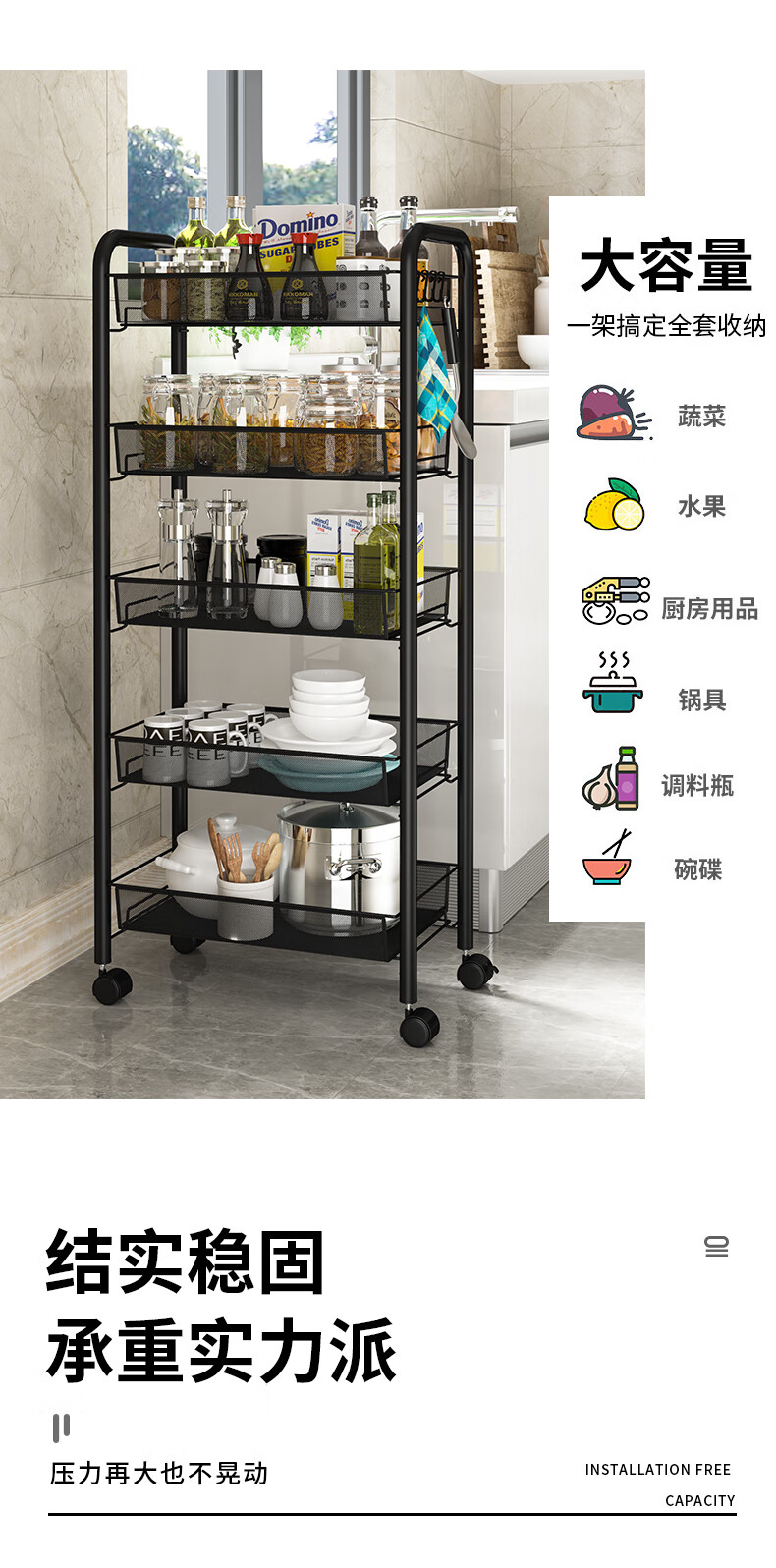 优缺点揭秘【网纳推车置物架厨房置物架】值得买吗?价格和参数怎样网纳推车置物架厨房置物架怎么样?优缺点揭秘【网纳推车置物架厨房置物架】值得买吗?价格和参数怎样?两边还带吊钩的,设计很是体贴生活!承重也很耐用,电饭煲都能放下!...