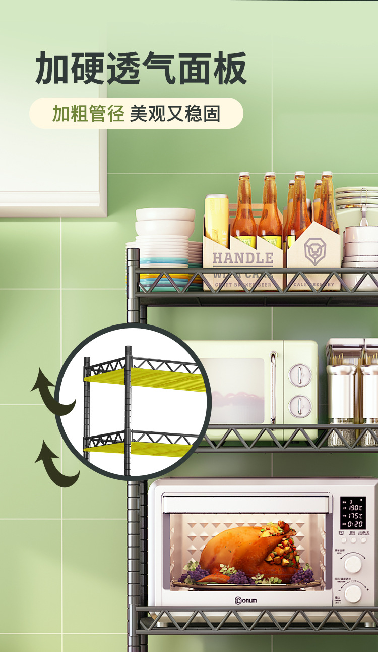 亿肃河【豪华升级下单配万向轮】304不锈钢带围栏厨房置物架五层落地置物架收纳架微波炉架储物架货架锅架 304带围栏加厚款长100宽50高180五层可调节亿肃河【豪华升级下单配万向轮】304不锈钢带围栏厨房置物架五层落地置物架收纳架微波炉架储物架货架锅架 304带围栏加厚款长100宽50高180五层可调节...