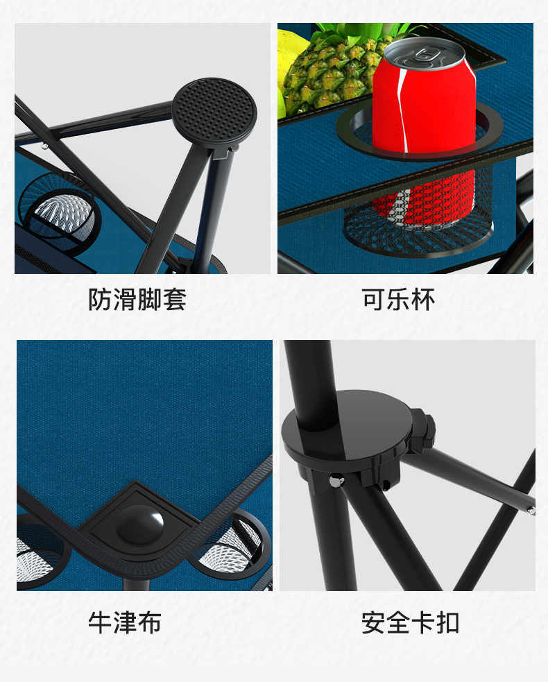 奥伦福特 户外折叠椅便携式沙滩椅野餐露营靠背椅写生椅便携式院子休闲椅子 大号克米特-黑色...