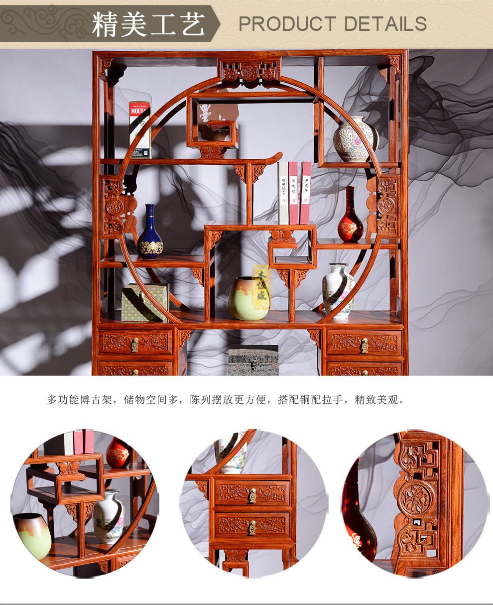 贡艺名居红木家具博古架怎么样?图文解说【贡艺名居红木家具博古架】怎么样?质量真的好吗?爆料测评?做工精美家里人都很喜欢红木家具对比了很多家真的没选错这家产品贡艺...