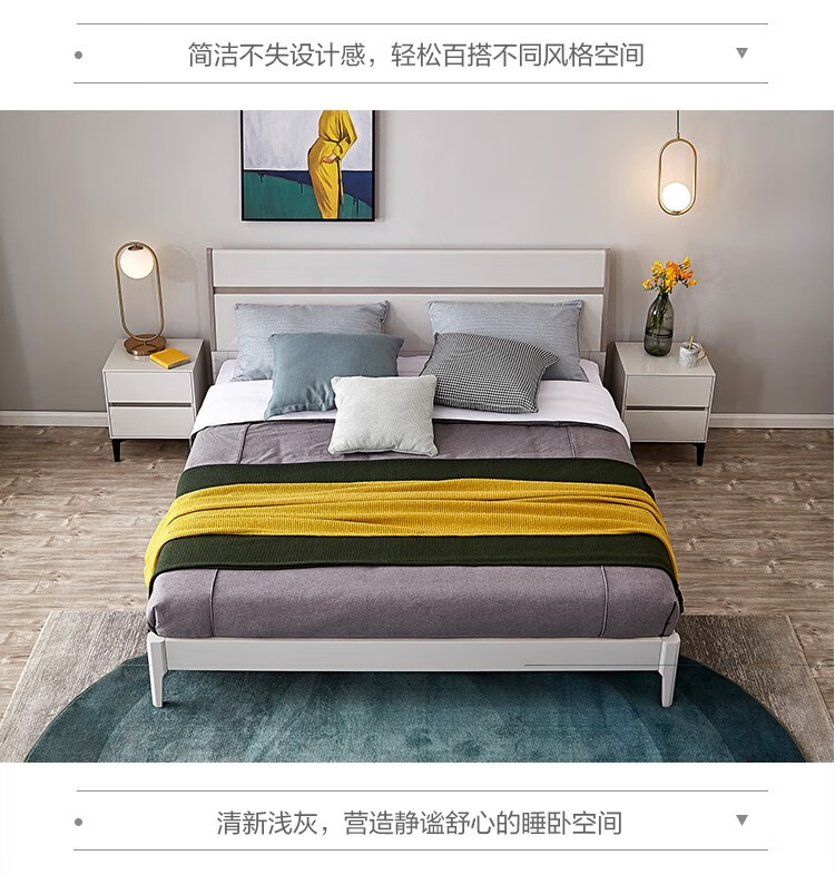 宜眠坊 床美式樱桃木轻奢风格实木床主卧单双人床软包高箱储物婚床大床家具 ZC-908 1.5/1.8米(可选)气压款...