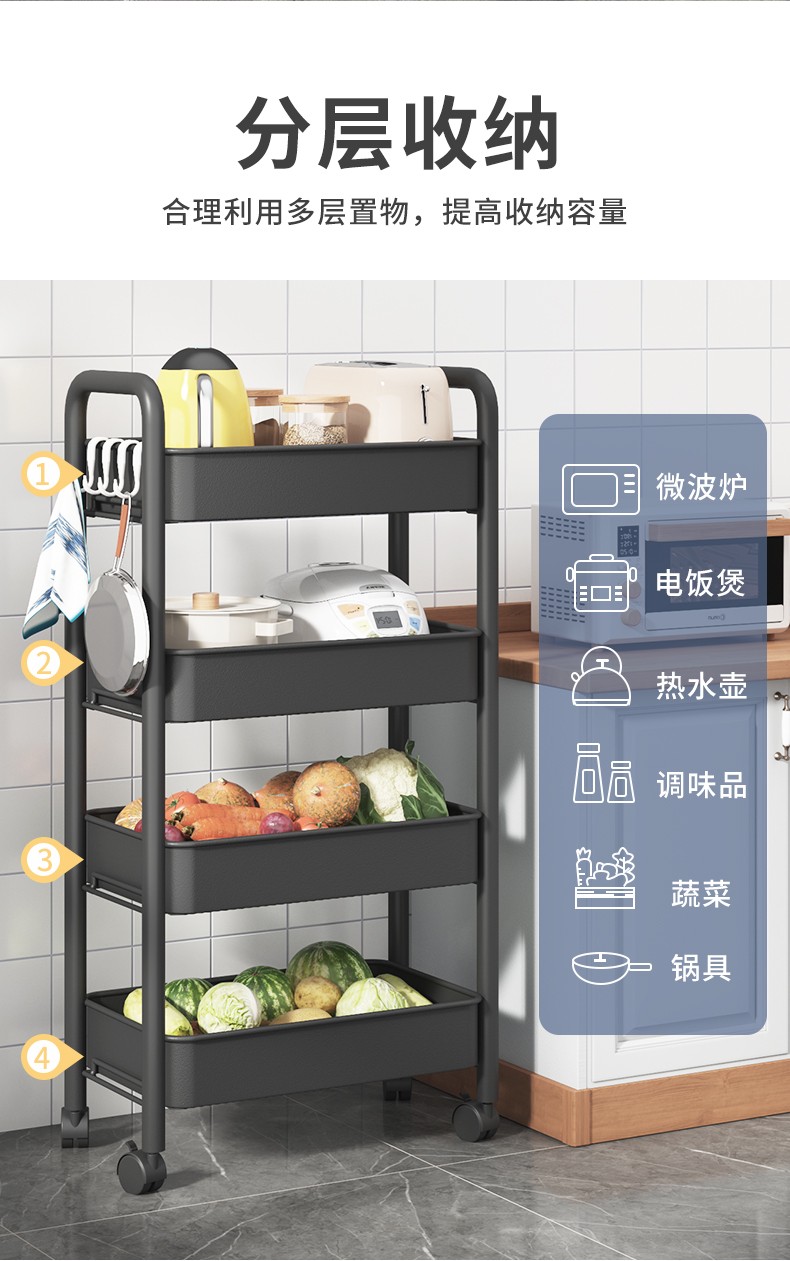 优缺点揭秘【网纳推车置物架厨房置物架】值得买吗?价格和参数怎样网纳推车置物架厨房置物架怎么样?优缺点揭秘【网纳推车置物架厨房置物架】值得买吗?价格和参数怎样?两边还带吊钩的,设计很是体贴生活!承重也很耐用,电饭煲都能放下!...