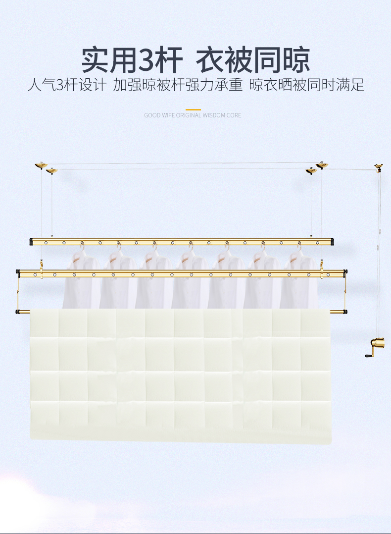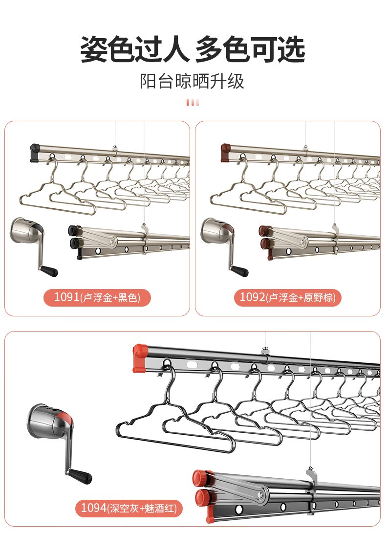 【免费安装】卡瑞琪手摇晾衣架阳台升降三杆手摇晾衣杆手动晒衣架折叠晒被子家用凉衣架 黑色三杆晾衣架2.0米【衣被同晒】【免费安装】卡瑞琪手摇晾衣架阳台升降三杆手摇晾衣杆手动晒衣架折叠晒被子家用凉衣架 黑色三杆晾衣架2.0米【衣被同晒】...