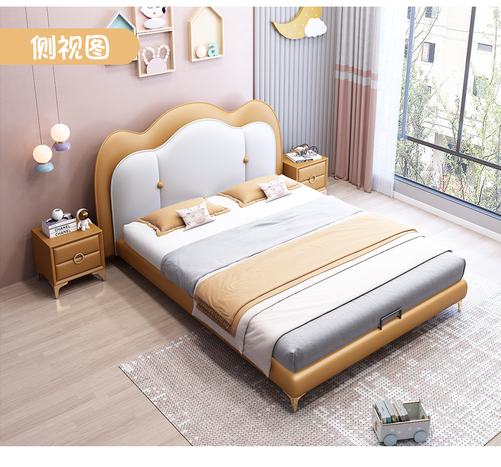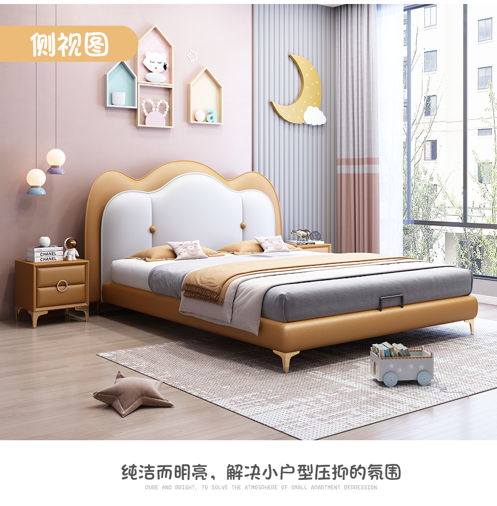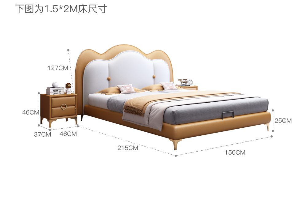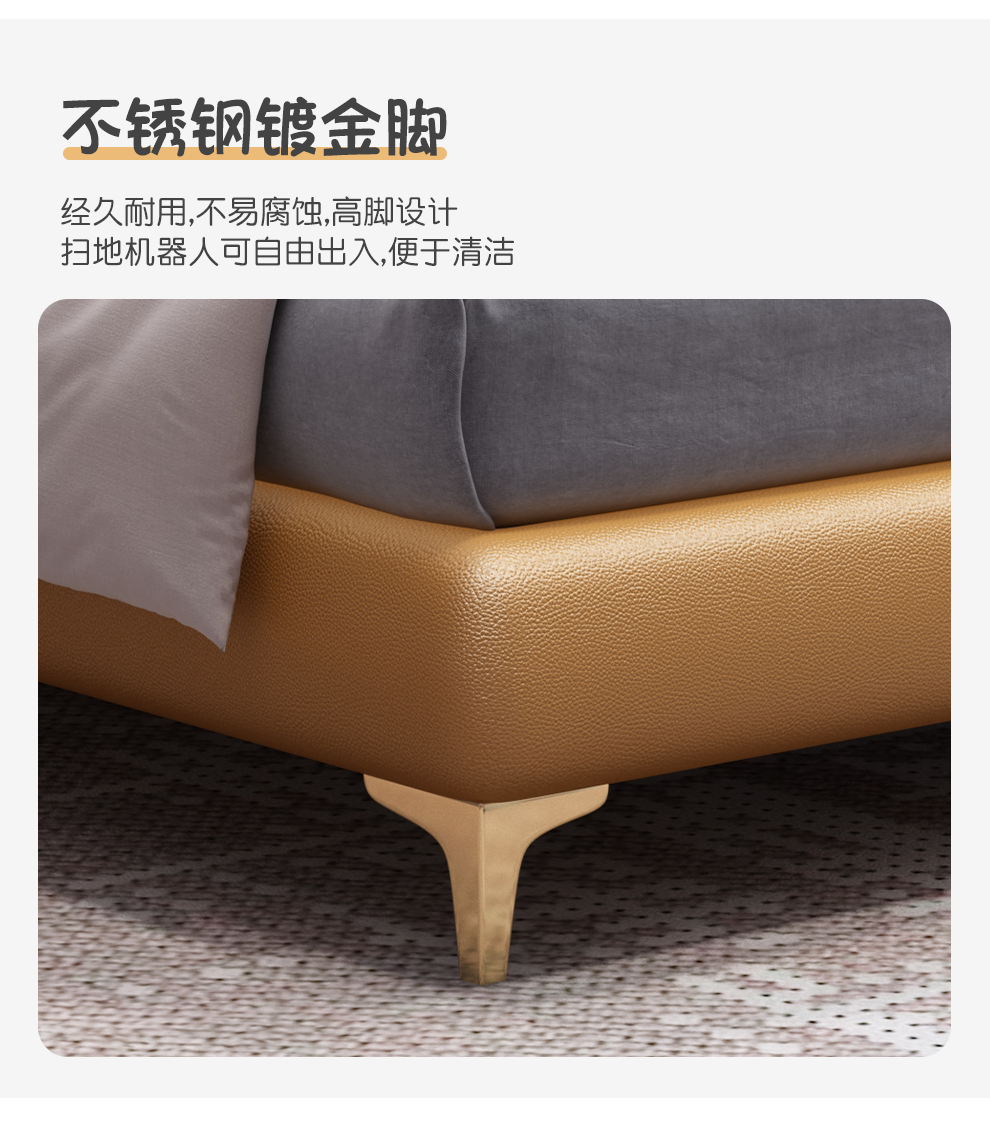 雅兰真皮床 卧室极简床1.8米1.5米软包床现代北欧风格双人皮床 威尼斯 1.8*2.0m