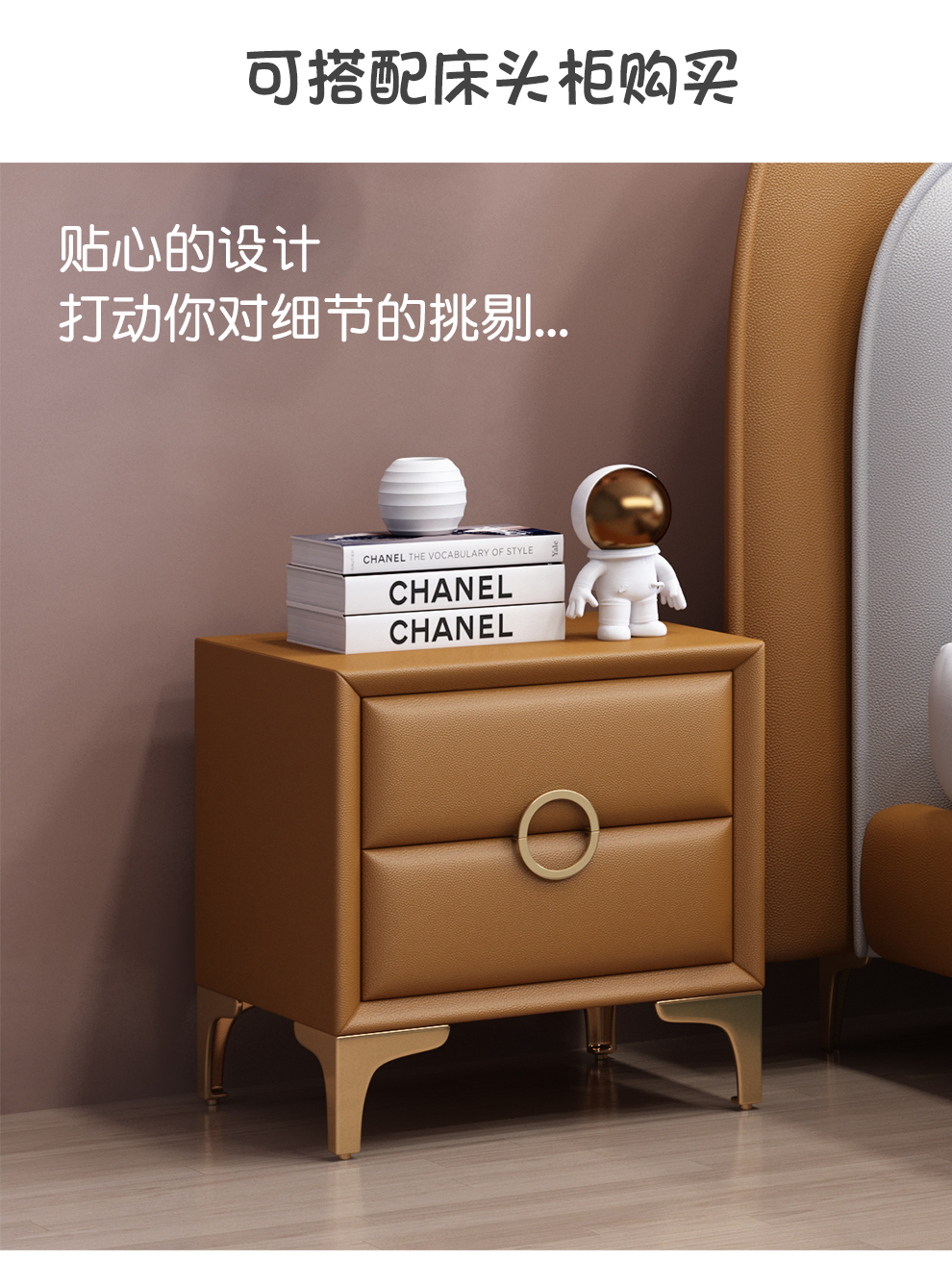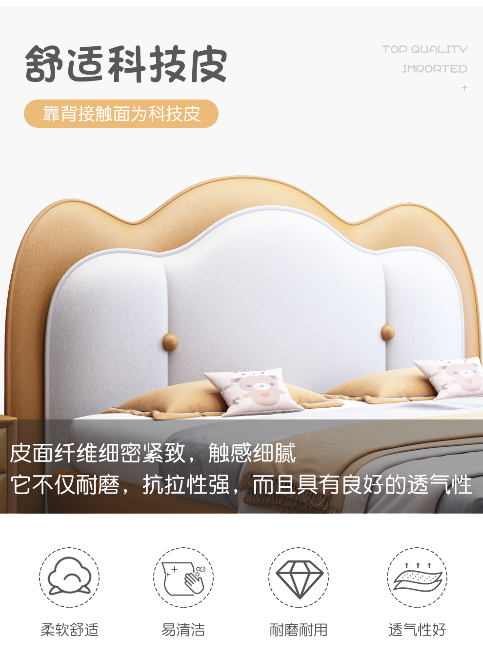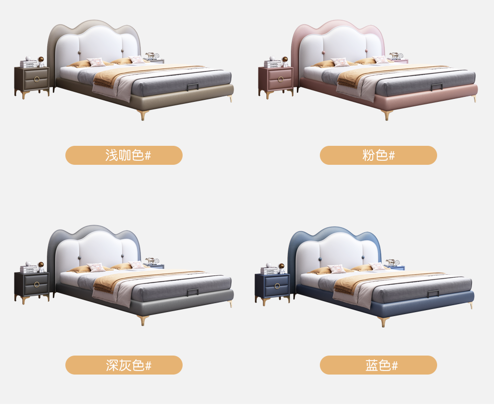 雅兰真皮床 卧室极简床1.8米1.5米软包床现代北欧风格双人皮床 威尼斯 1.8*2.0m