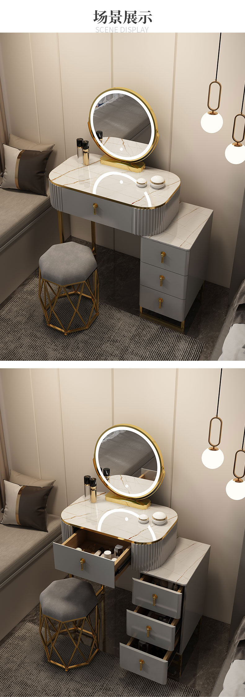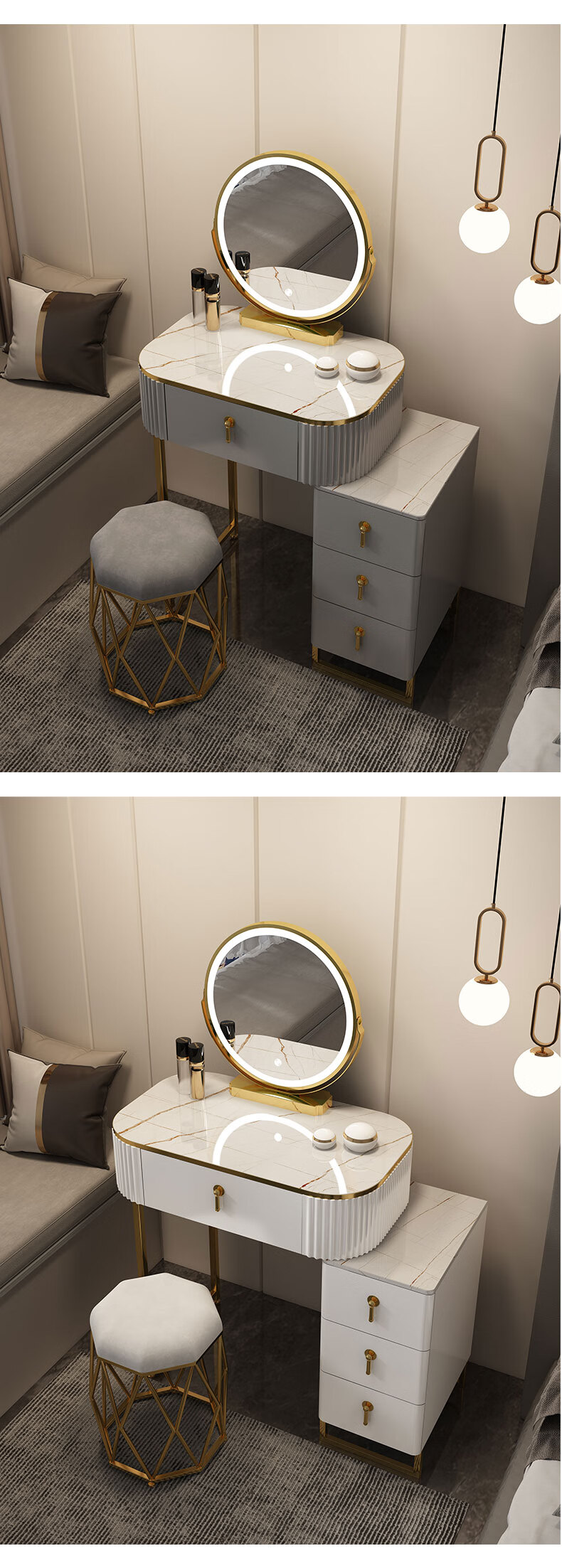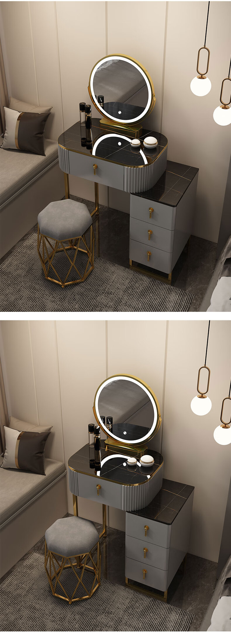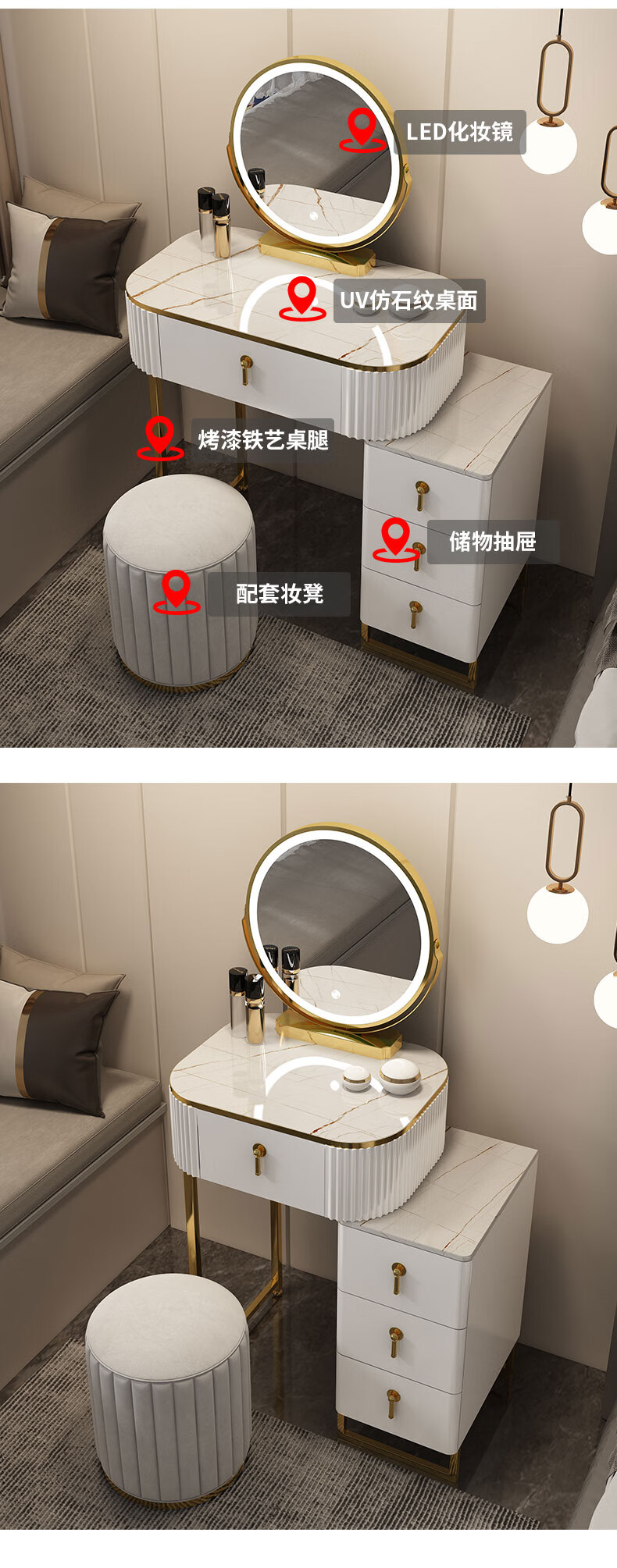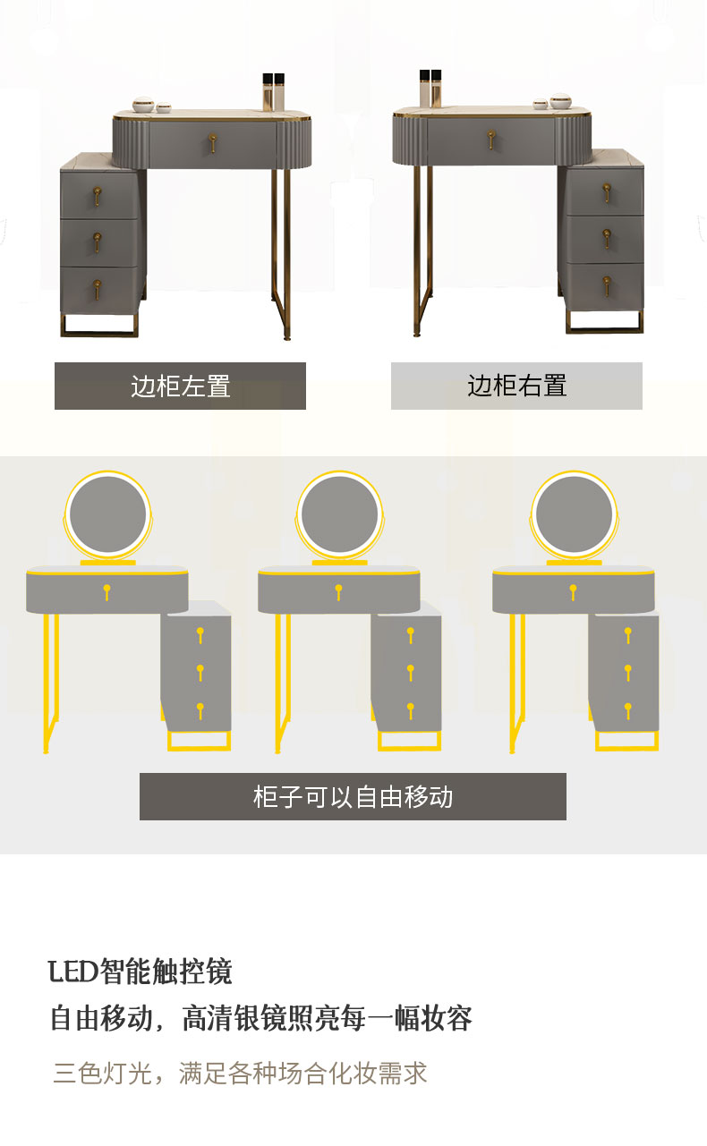 星图 梳妆台 现代简约梳妆台卧室小型轻奢台收纳一体岩板化妆桌带灯镜化妆台 1.5m梳妆台+边柜+妆凳 钢琴烤漆+不锈钢钛金+LED三色镜星图 梳妆台 现代简约梳妆台卧室小型轻奢台收纳一体岩板化妆桌带灯镜化妆台 1.5m梳妆台+边柜+妆凳 钢琴烤漆+不锈钢钛金+LED三色镜...