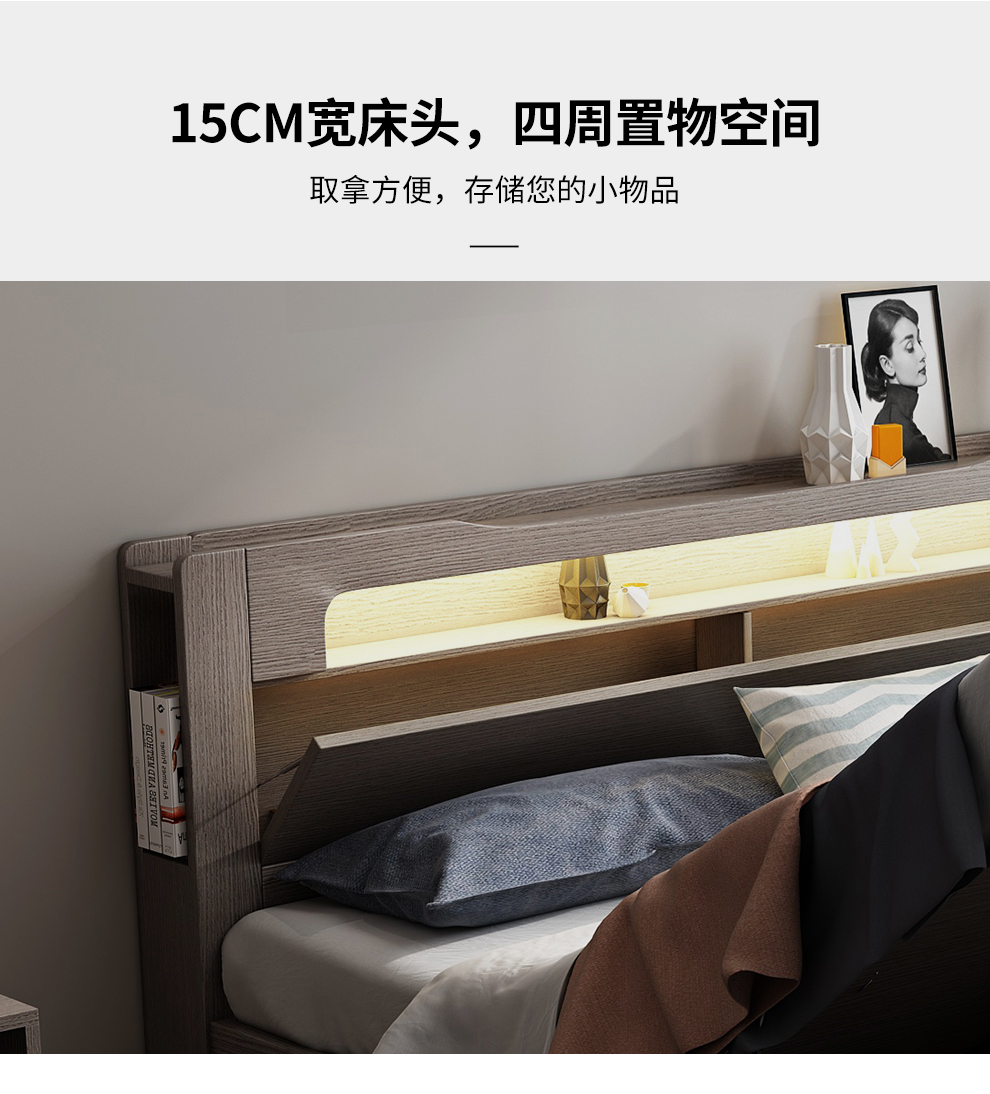 博紋帝 床 实木质床1.8米双人床1.5米单人1.2米床现代简约出租房简易床 灰色软包款-1.5米*2.0米 床+2.5cm床垫