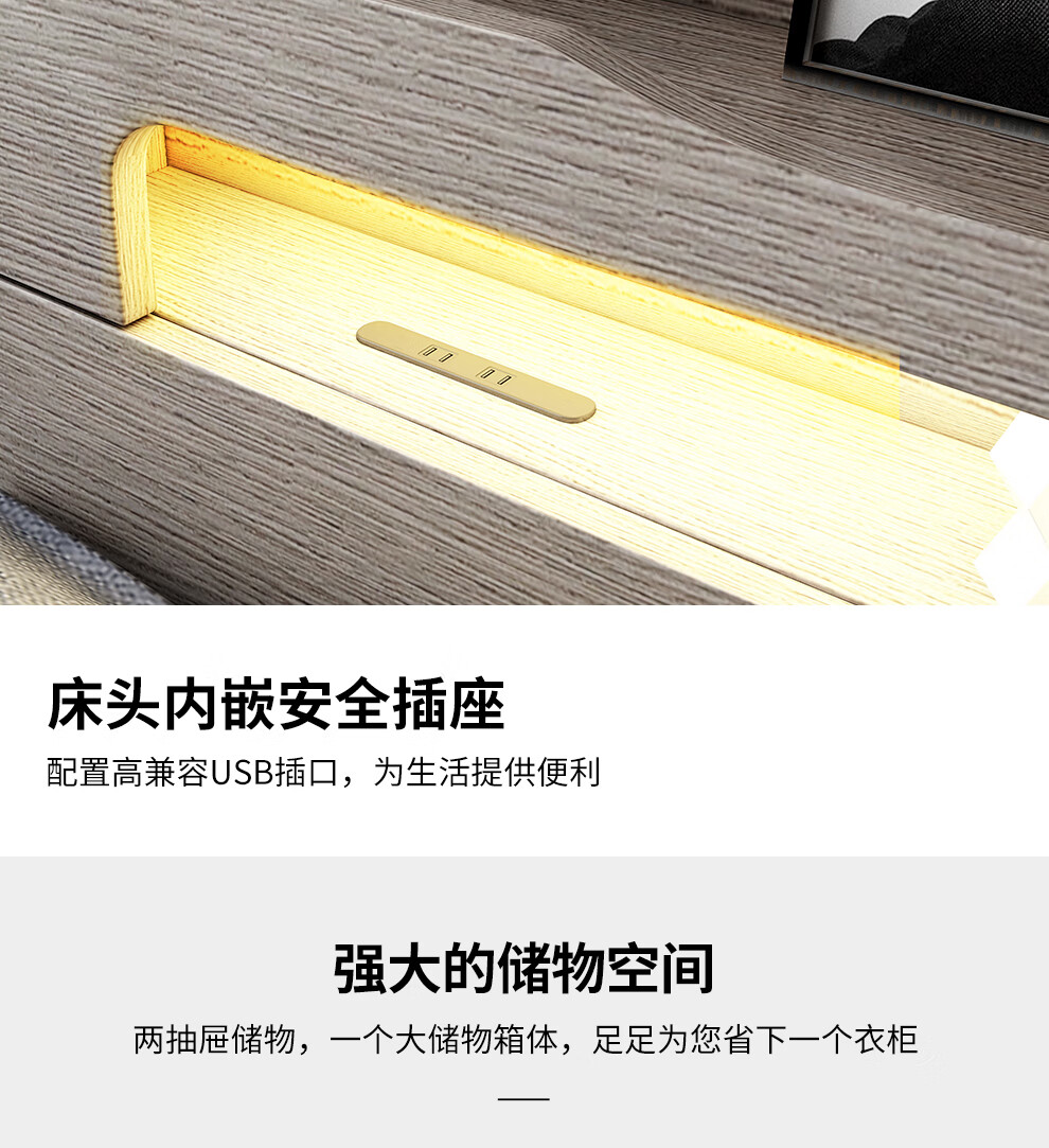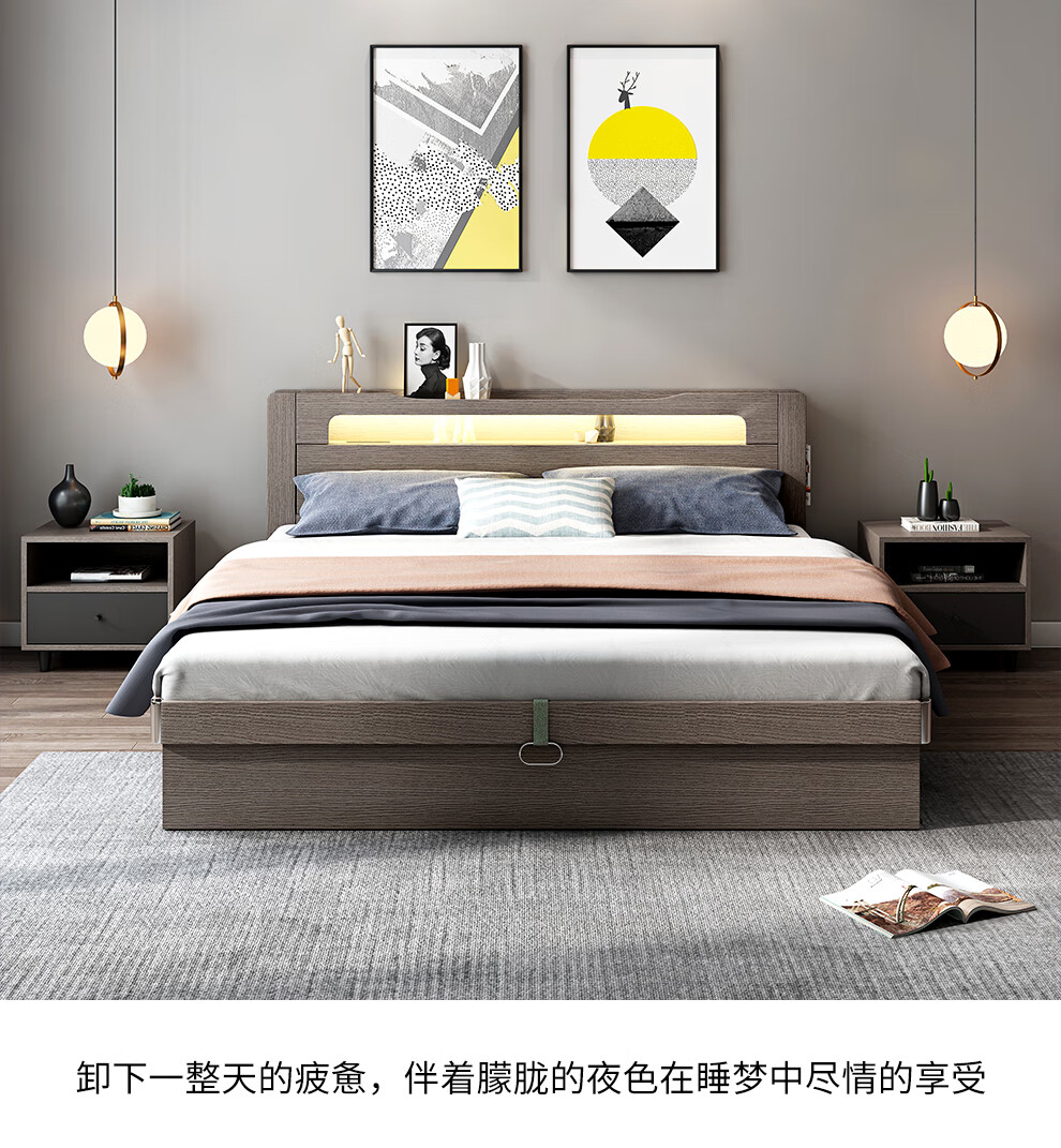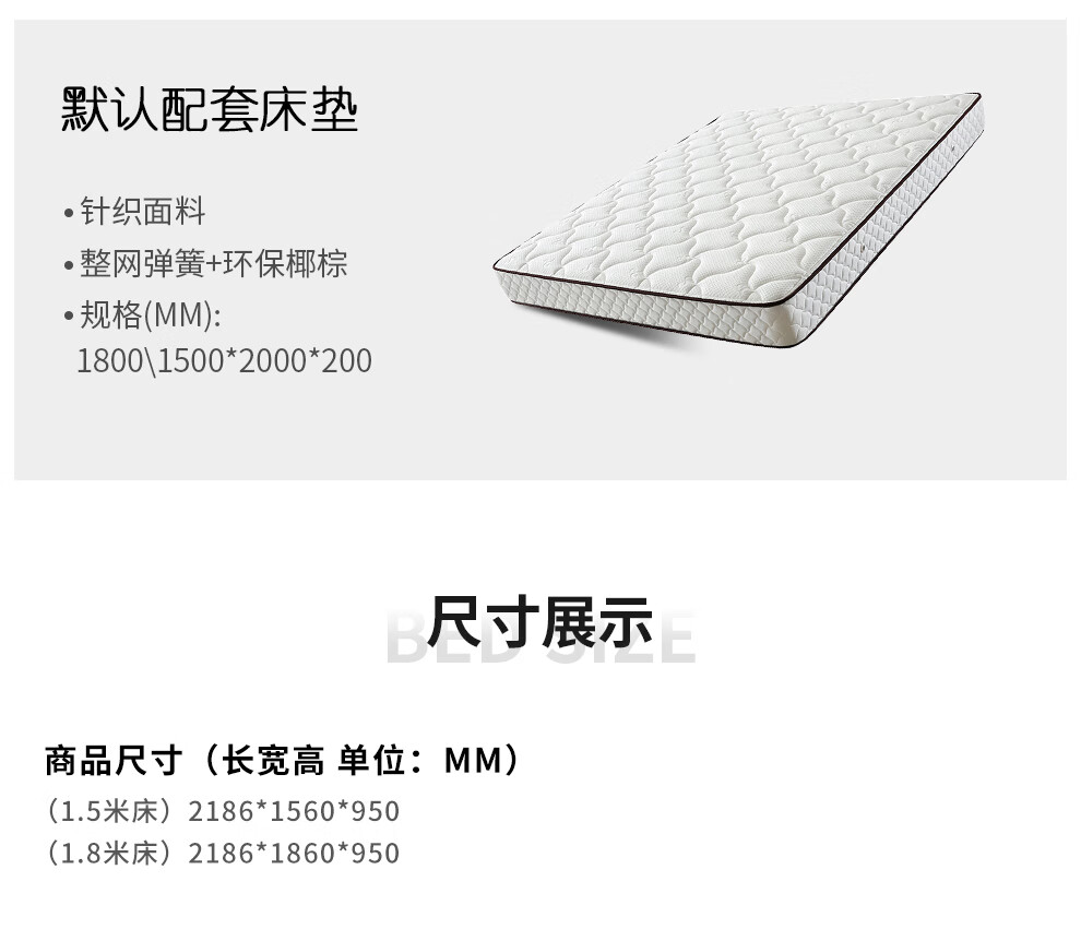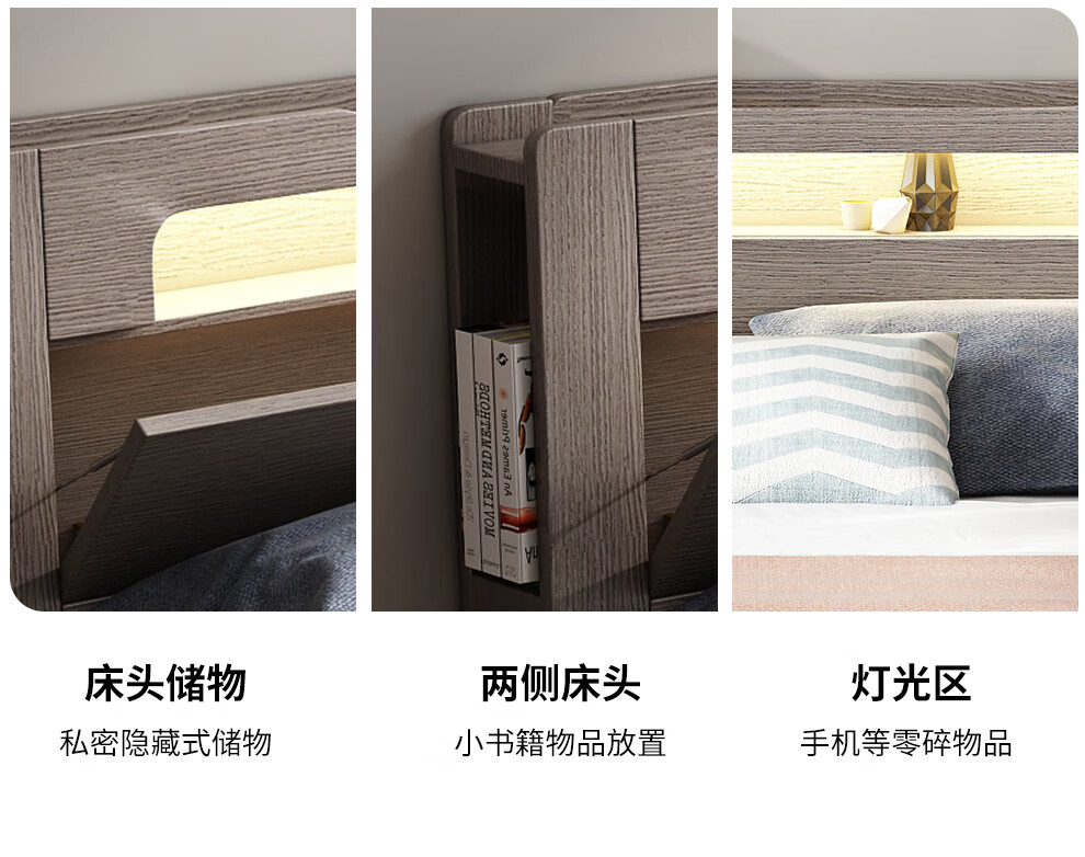博紋帝 床 实木质床1.8米双人床1.5米单人1.2米床现代简约出租房简易床 灰色软包款-1.5米*2.0米 床+2.5cm床垫...