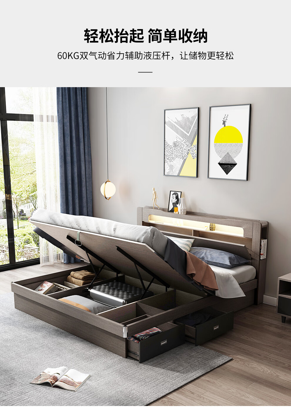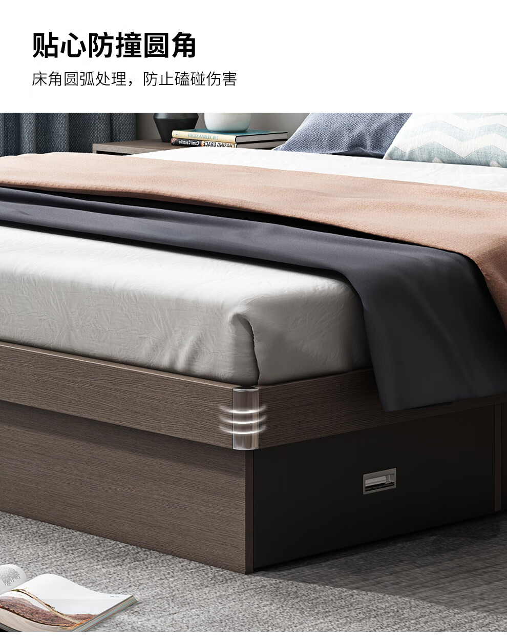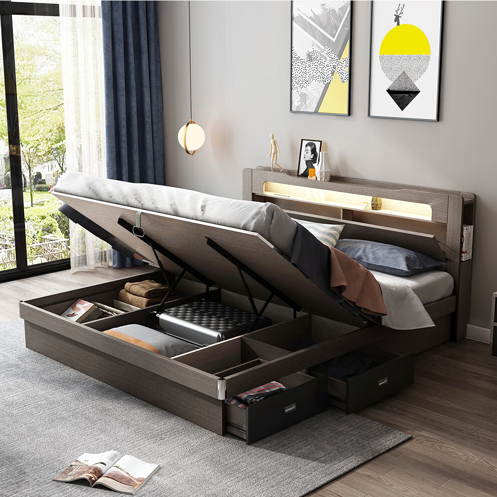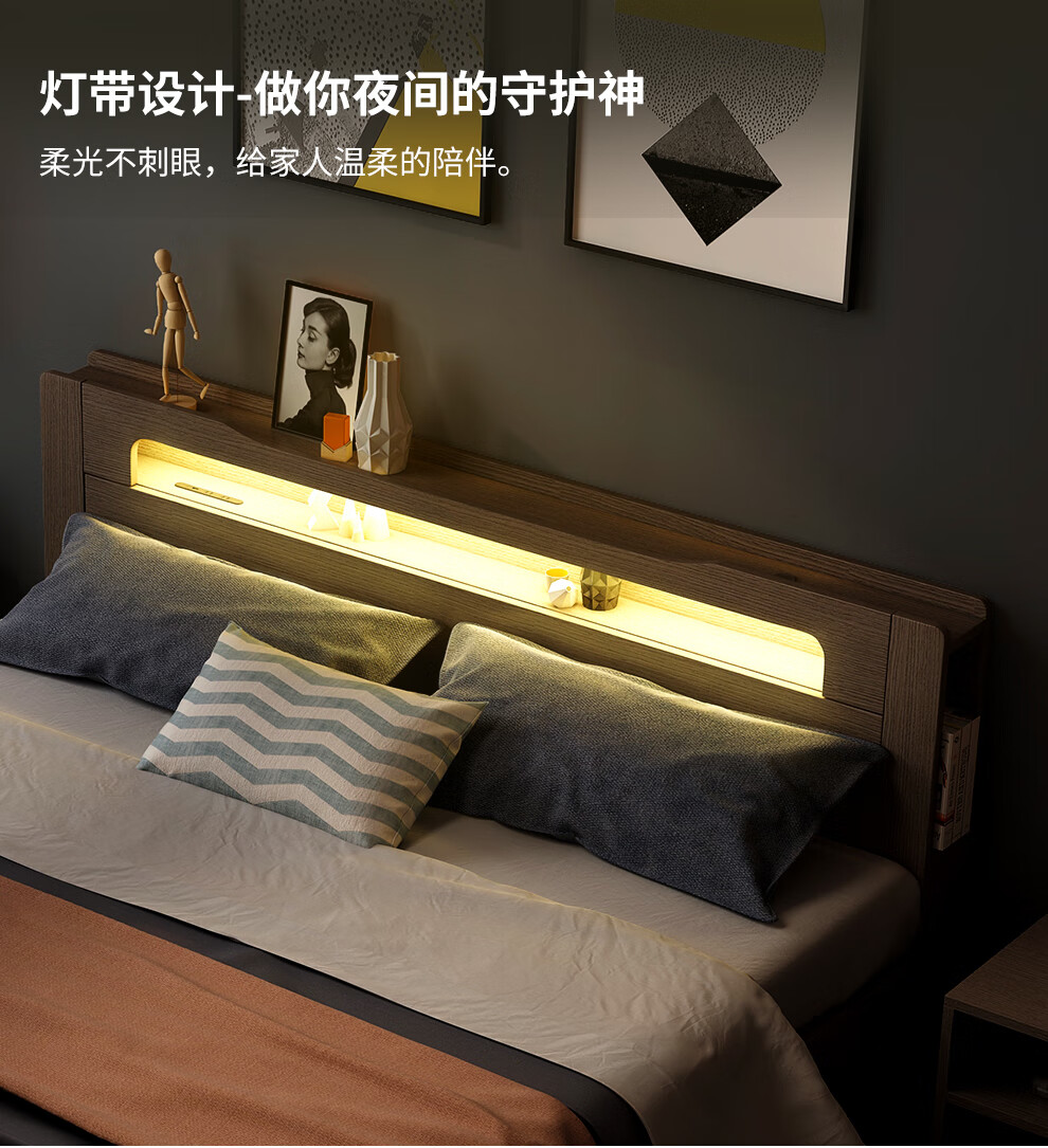 博紋帝 床 实木质床1.8米双人床1.5米单人1.2米床现代简约出租房简易床 灰色软包款-1.5米*2.0米 床+2.5cm床垫...