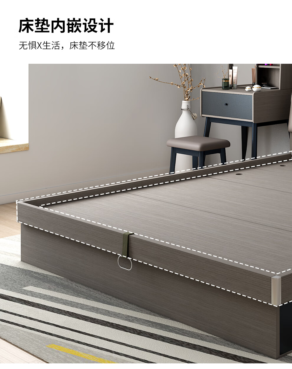 千番町 北欧轻奢网红ins风梳妆台卧室现代简约小户型化妆桌子柜一体化妆台 单桌100灰白黑无凳无镜可换颜色 整装