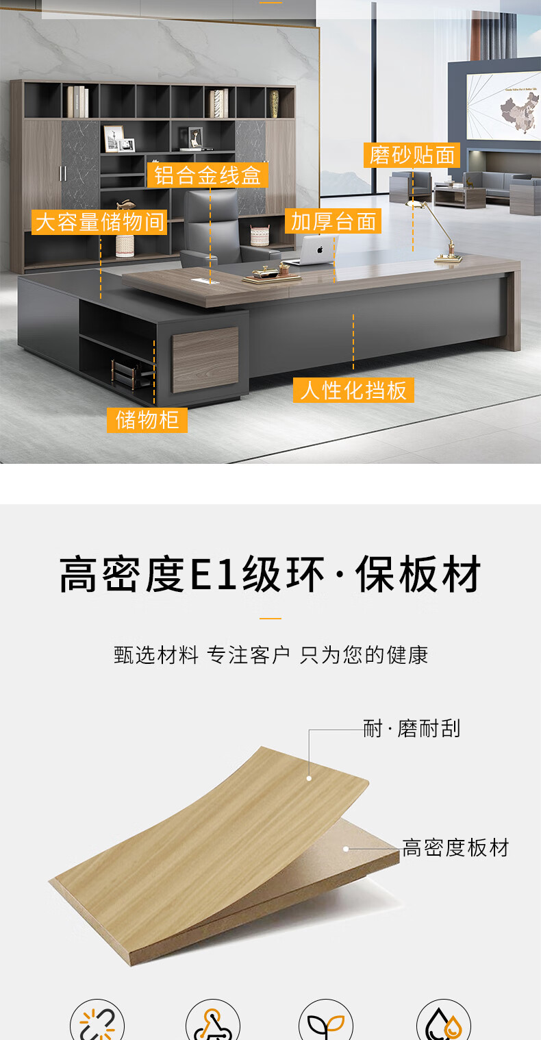 紫木林 老板桌办公桌椅组合简约现代办公室经理总裁大班台电脑桌子会议桌 1.6米(面2.5cm厚)【金橡木色】紫木林 老板桌办公桌椅组合简约现代办公室经理总裁大班台电脑桌子会议桌 1.6米(面2.5cm厚)【金橡木色】...
