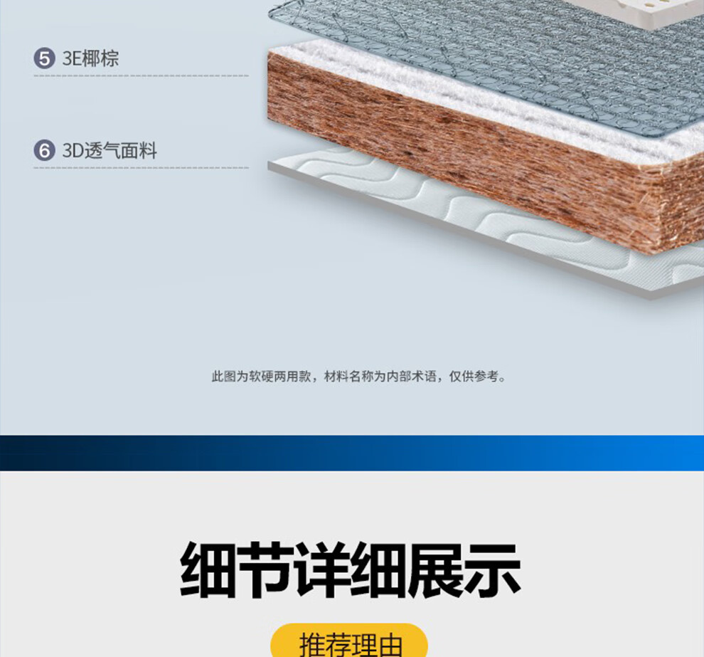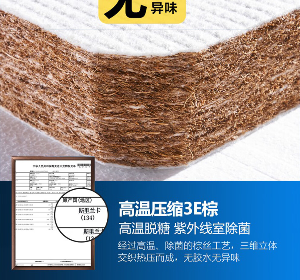 徐师傅山棕床垫棕榈床垫天然手工无胶榻榻米棕垫床垫静音硬棕垫1.8米可定制 3D面料 总厚度9.5cm(无胶缝制) 1500*1900...
