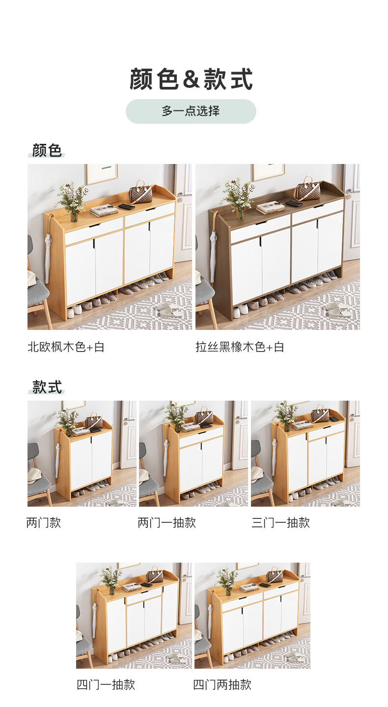 爱沐歌 入户鞋柜玄关可定制大容量门厅柜平开门 多层收纳柜客厅抽屉柜衣帽架 玄关柜110长35深200高-六门 灰橡木柜体+白门/其他颜色联系客服...