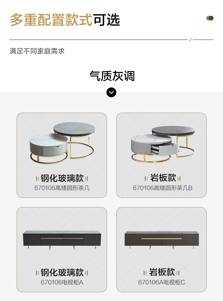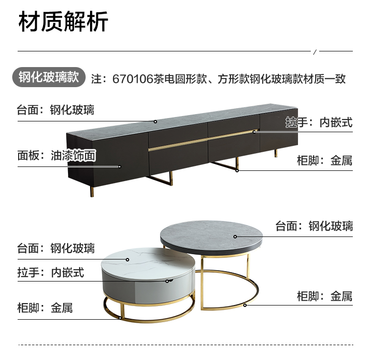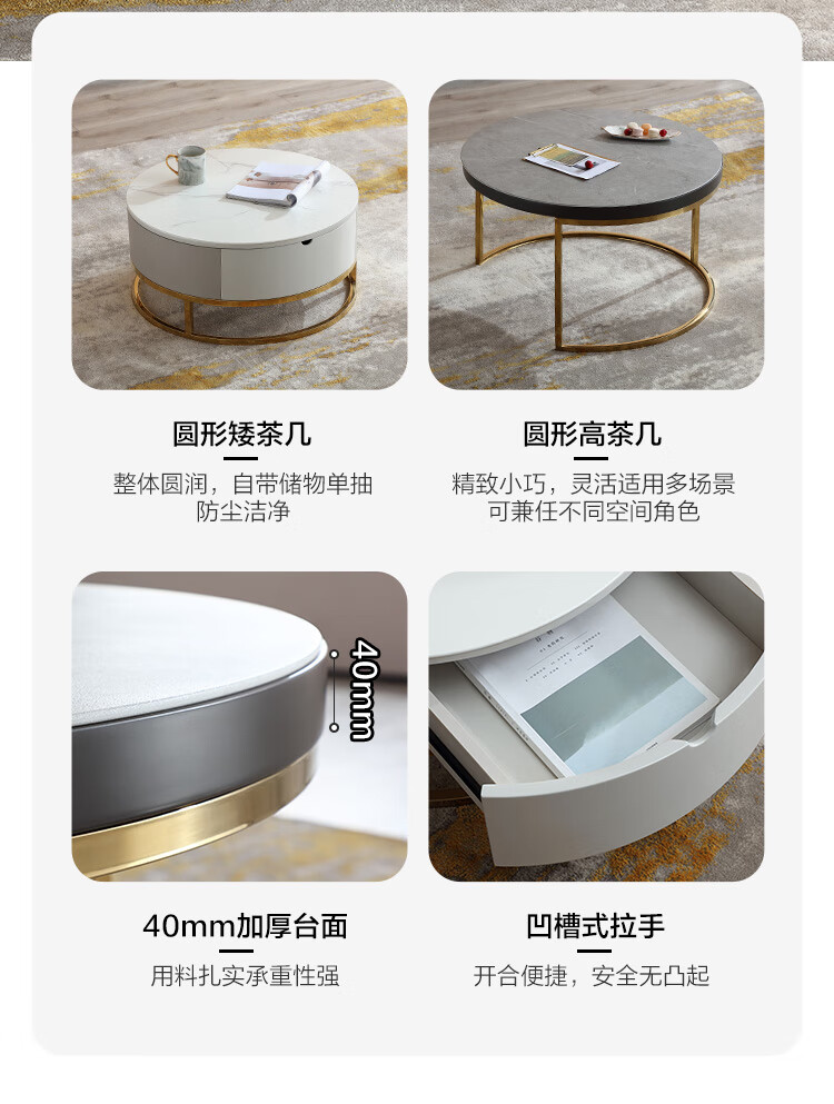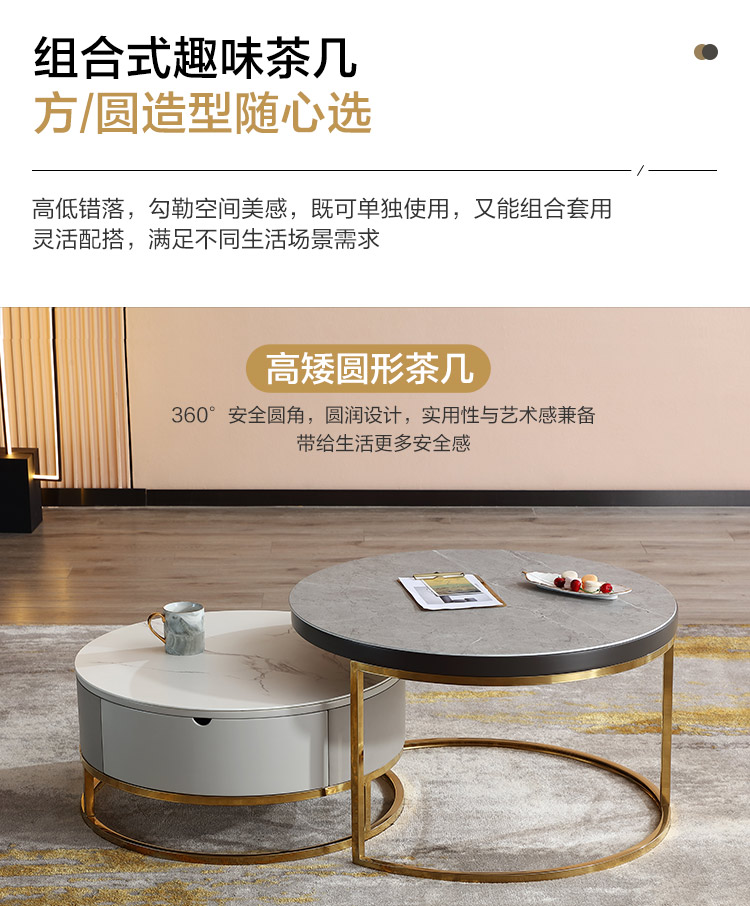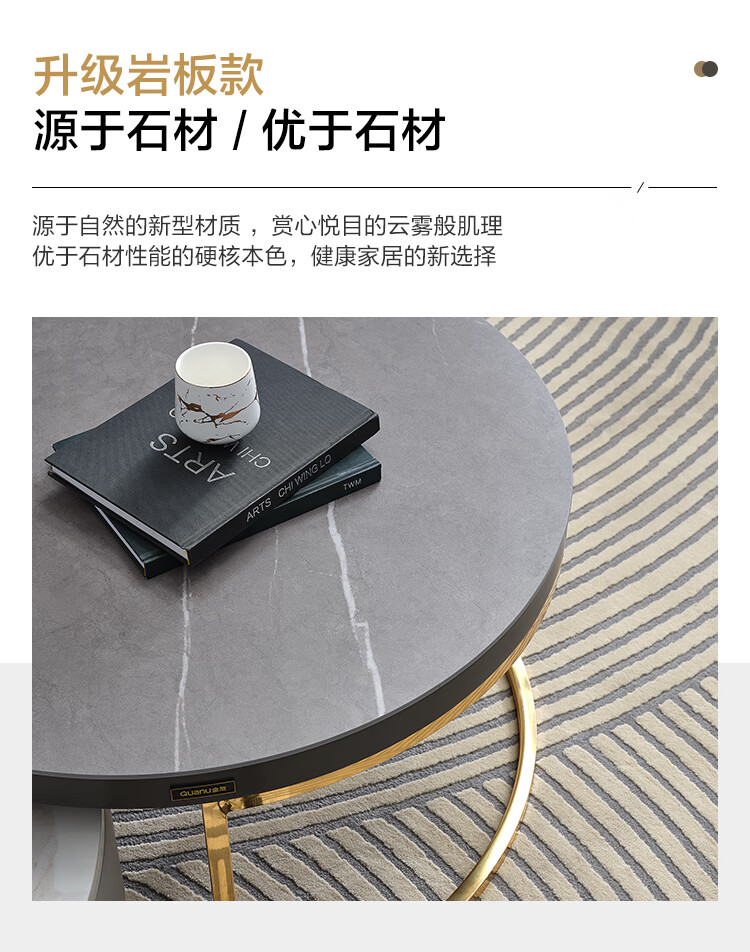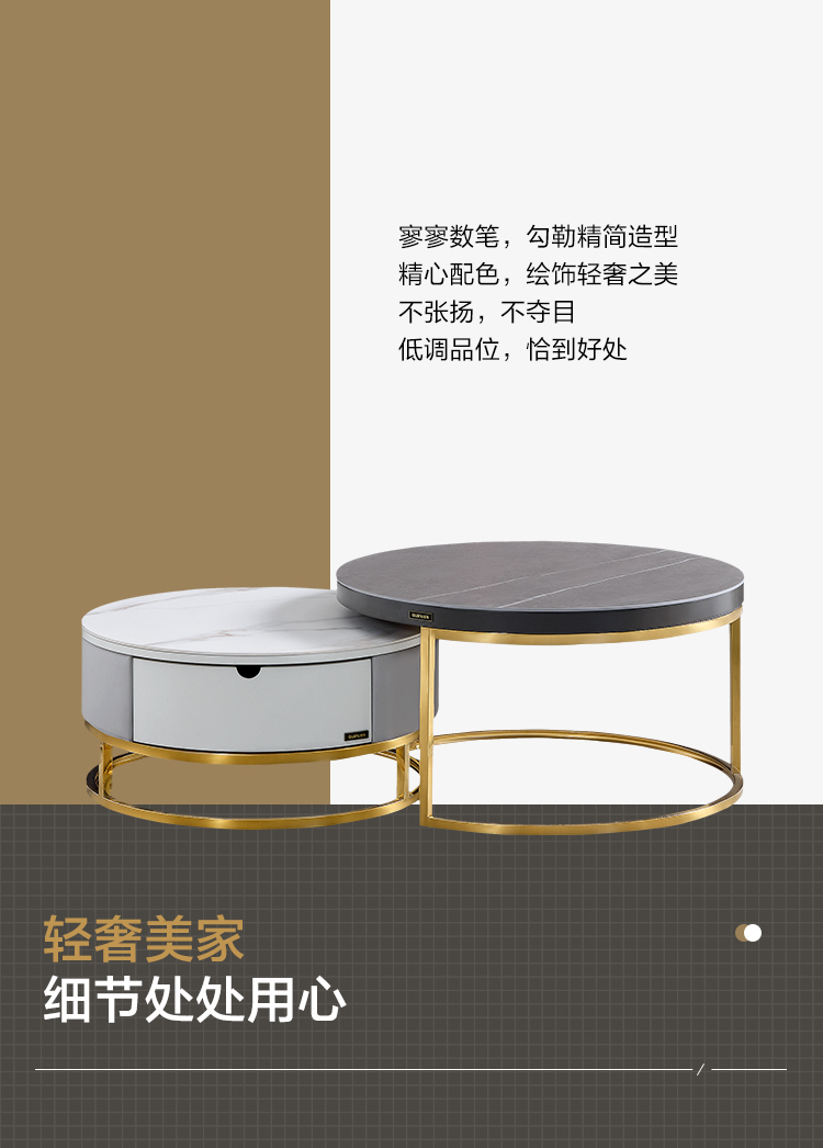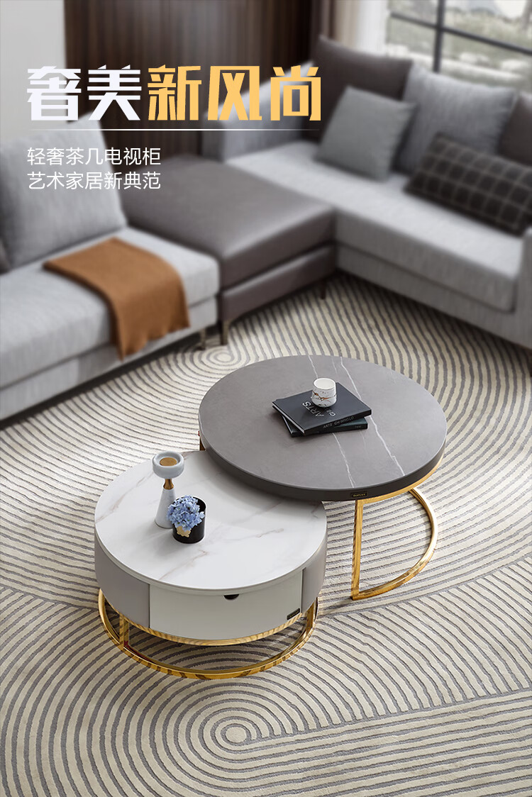 虎珂 茶几 意式轻奢圆形茶几钢化玻璃不锈钢现代简约家用客厅创意设计师茶几 古铜拉丝圆茶几0.8M