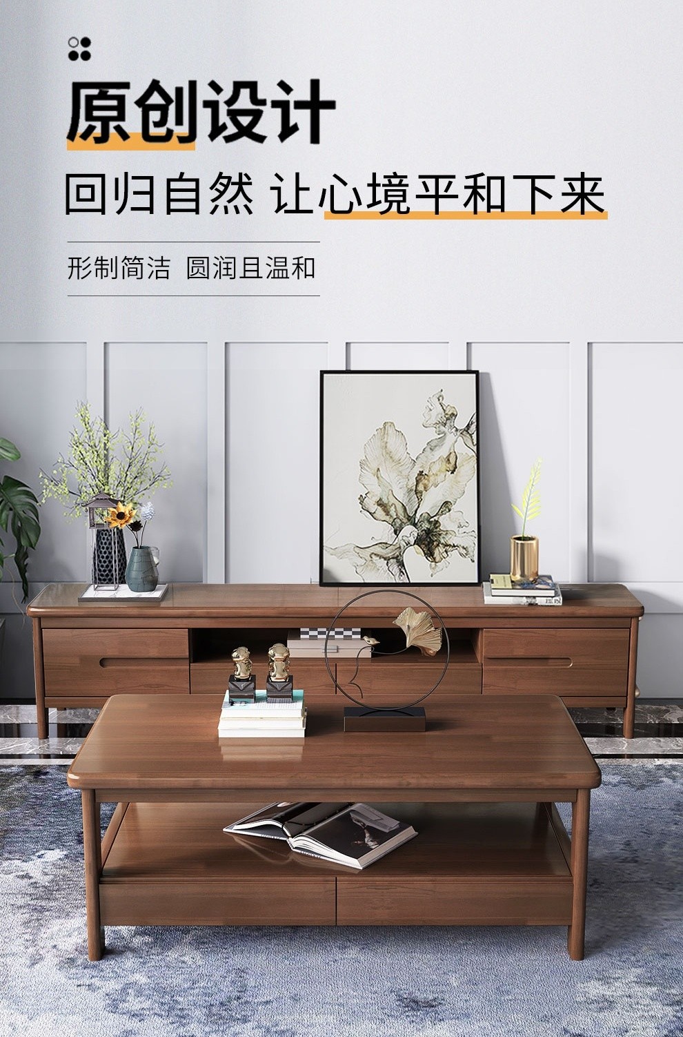 凡木匠 实木茶桌椅组合 新中式阳台茶桌茶台茶几桌 简约功夫茶桌小 小户型茶桌套装办公室泡茶桌 1.15米茶桌+1软包月牙椅-2月牙椅