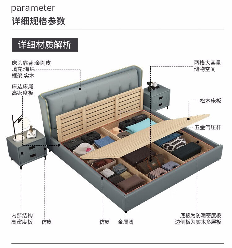 卡洛森 床 实木床现代简约双人床1.8米卧室北欧轻奢床主卧室高箱气压储物婚床 单床 1500*2000mm(箱框结构)卡洛森 床 实木床现代简约双人床1.8米卧室北欧轻奢床主卧室高箱气压储物婚床 单床 1500*2000mm(箱框结构)...