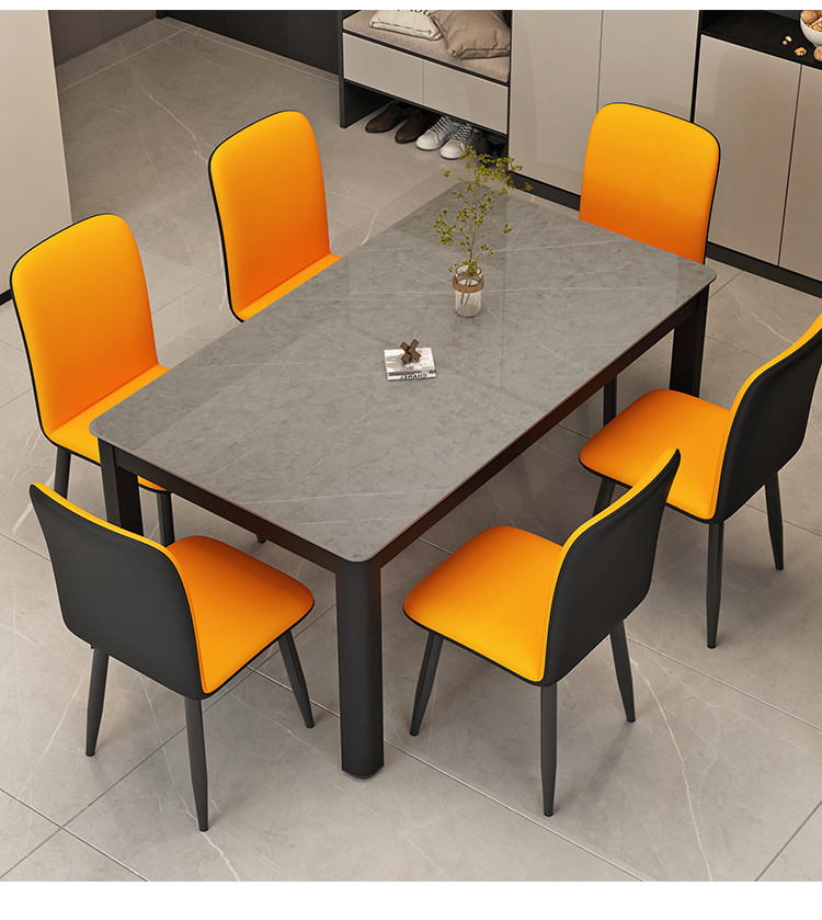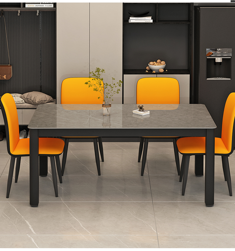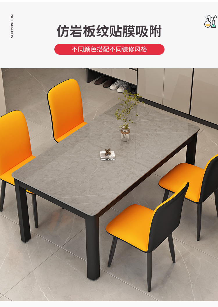 意式轻奢吃饭桌子 现代简约小户型家用长方形亮光岩板餐桌椅组合 1.4米岩板餐桌【潘多拉亮光】 岩板颜色可选