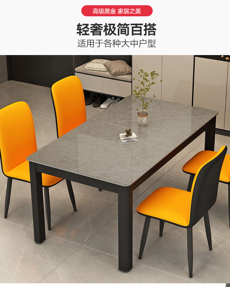 意式轻奢吃饭桌子 现代简约小户型家用长方形亮光岩板餐桌椅组合 1.4米岩板餐桌【潘多拉亮光】 岩板颜色可选...