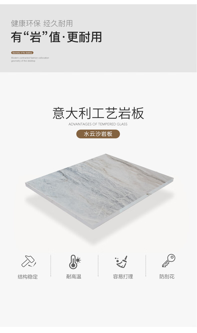 【现货闪发】A家家居 意式极简岩板餐桌椅长形大理石小户型北欧简约餐厅1.35米1.6米1.8米 意式岩板 1.8米餐桌(劳伦黑金)
