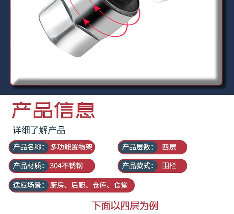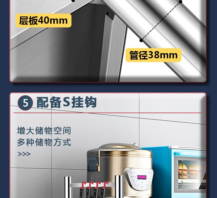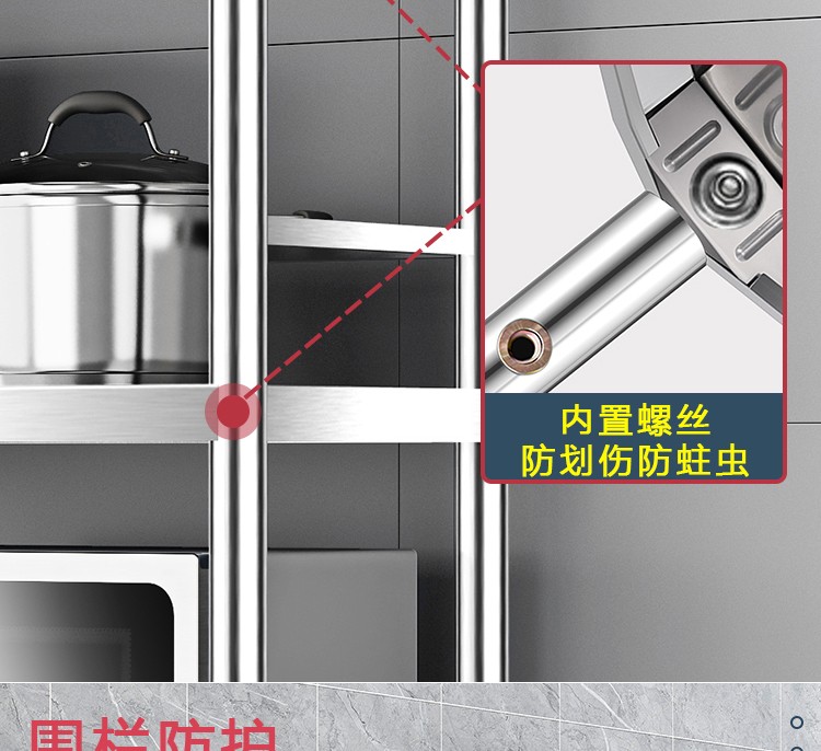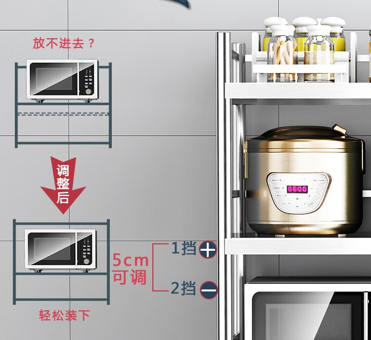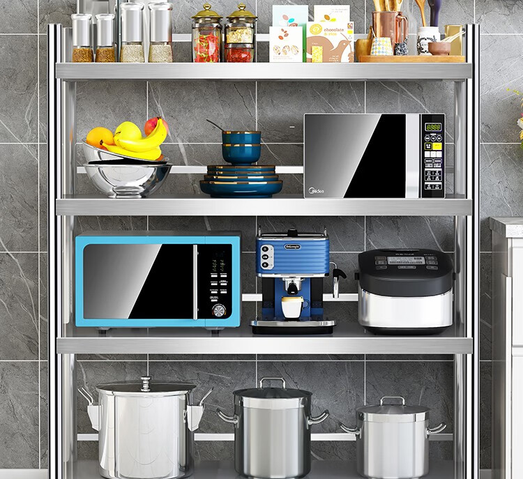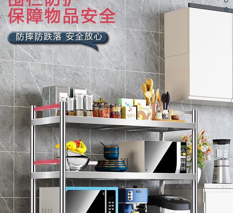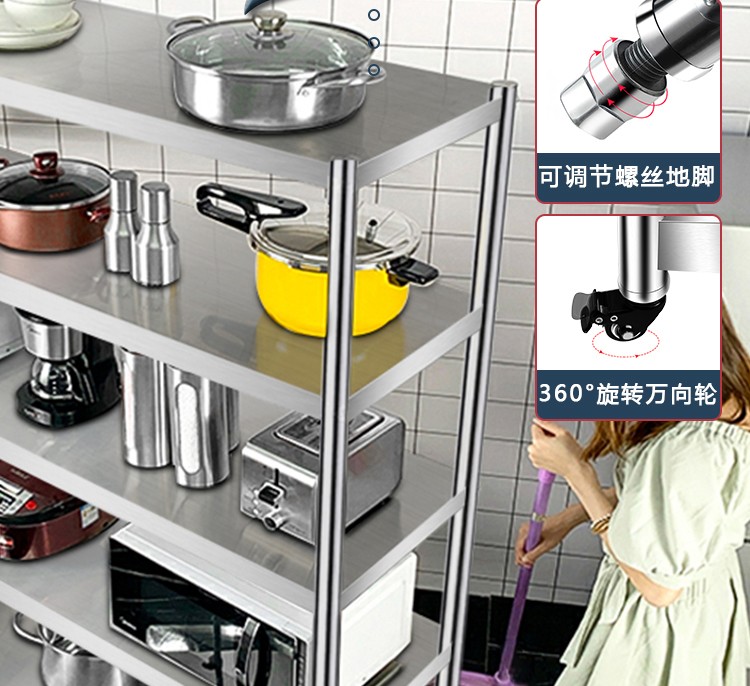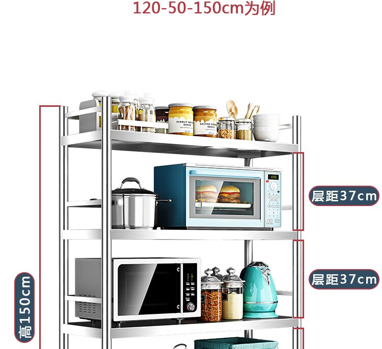亿肃河【豪华升级下单配万向轮】304不锈钢带围栏厨房置物架五层落地置物架收纳架微波炉架储物架货架锅架 304带围栏加厚款长100宽50高180五层可调节亿肃河【豪华升级下单配万向轮】304不锈钢带围栏厨房置物架五层落地置物架收纳架微波炉架储物架货架锅架 304带围栏加厚款长100宽50高180五层可调节...