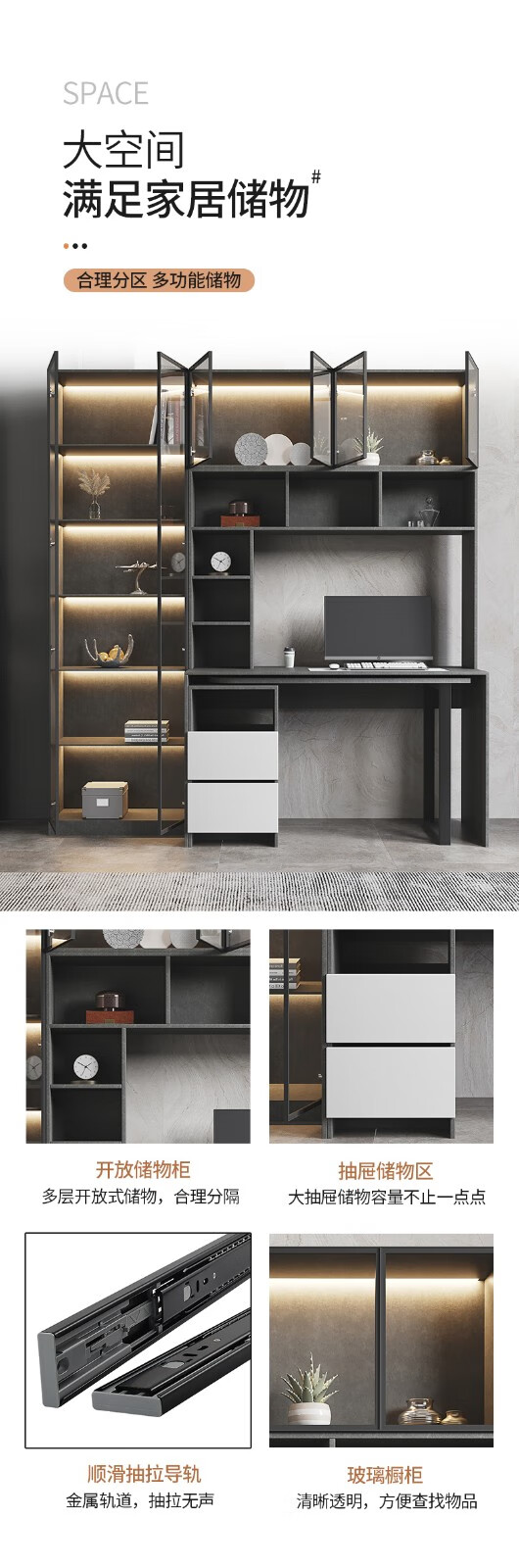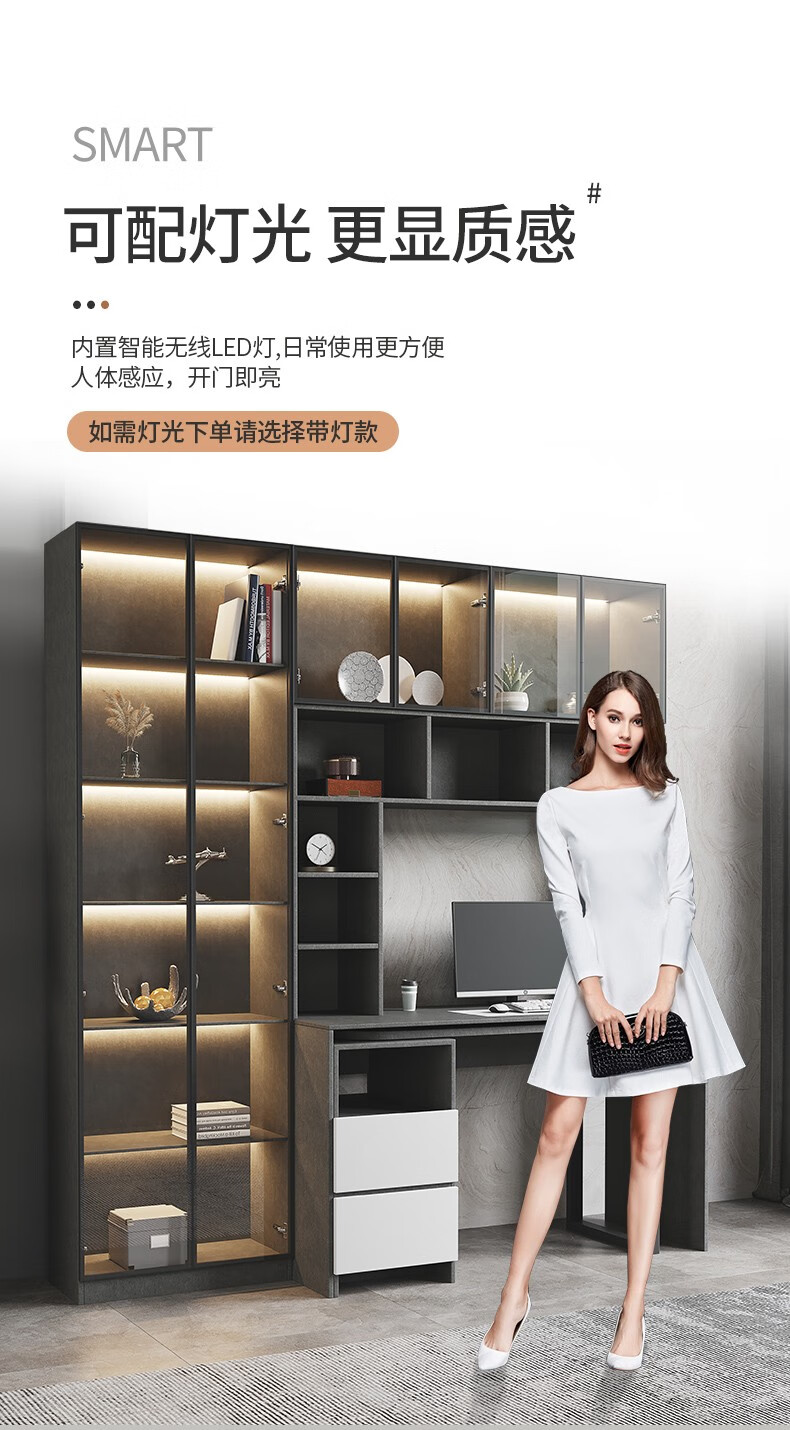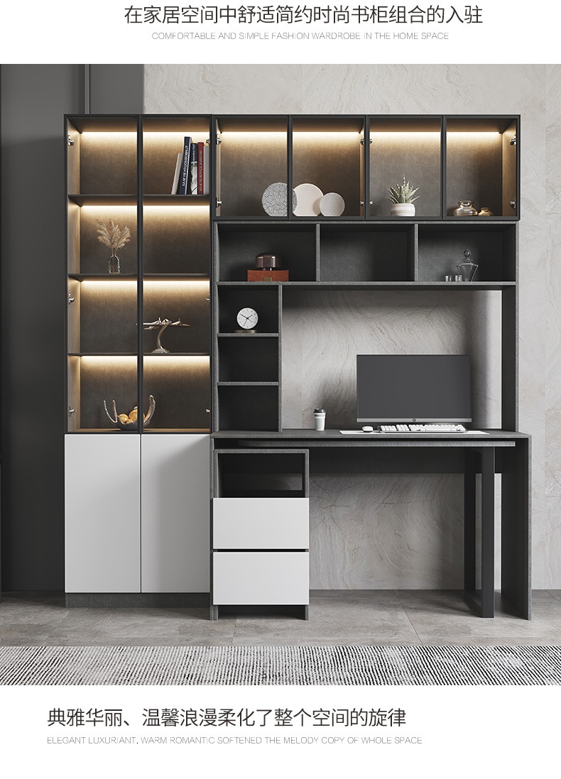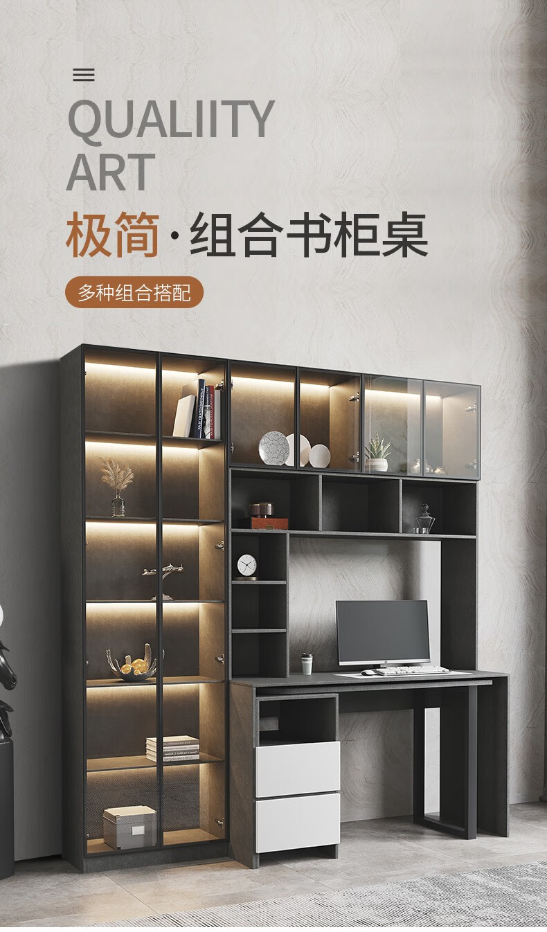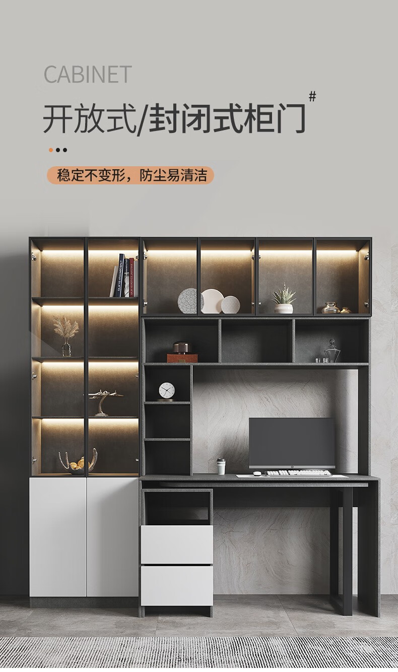 普派电脑桌台式现代简约书架组合家用一体升级加固学生写字桌子 【书架款】莫兰迪灰色 140*55*75cm普派电脑桌台式现代简约书架组合家用一体升级加固学生写字桌子 【书架款】莫兰迪灰色 140*55*75cm...