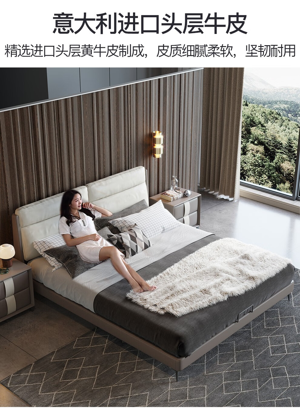 【只用真皮 质保5年】凯洛狮顿 意式极简真皮床主卧简约软包床设计师款双人皮床卧室家具 意式真皮床 1500*2000框架结构无储物【只用真皮 质保5年】凯洛狮顿 意式极简真皮床主卧简约软包床设计师款双人皮床卧室家具 意式真皮床 1500*2000框架结构无储物...