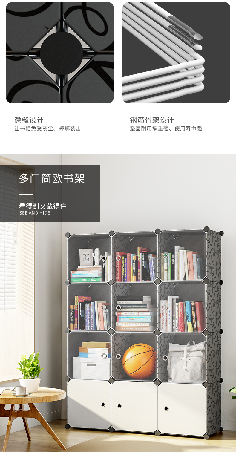 蜗家 布衣柜简易衣柜16管加粗防尘防潮双人出租房宿舍卧室组装收纳衣柜组合衣服柜 竹叶【长130*宽46*高168】店长推荐...