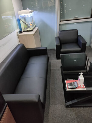 沙发皮质不错,外观也很商务风,放办公室里非常合适