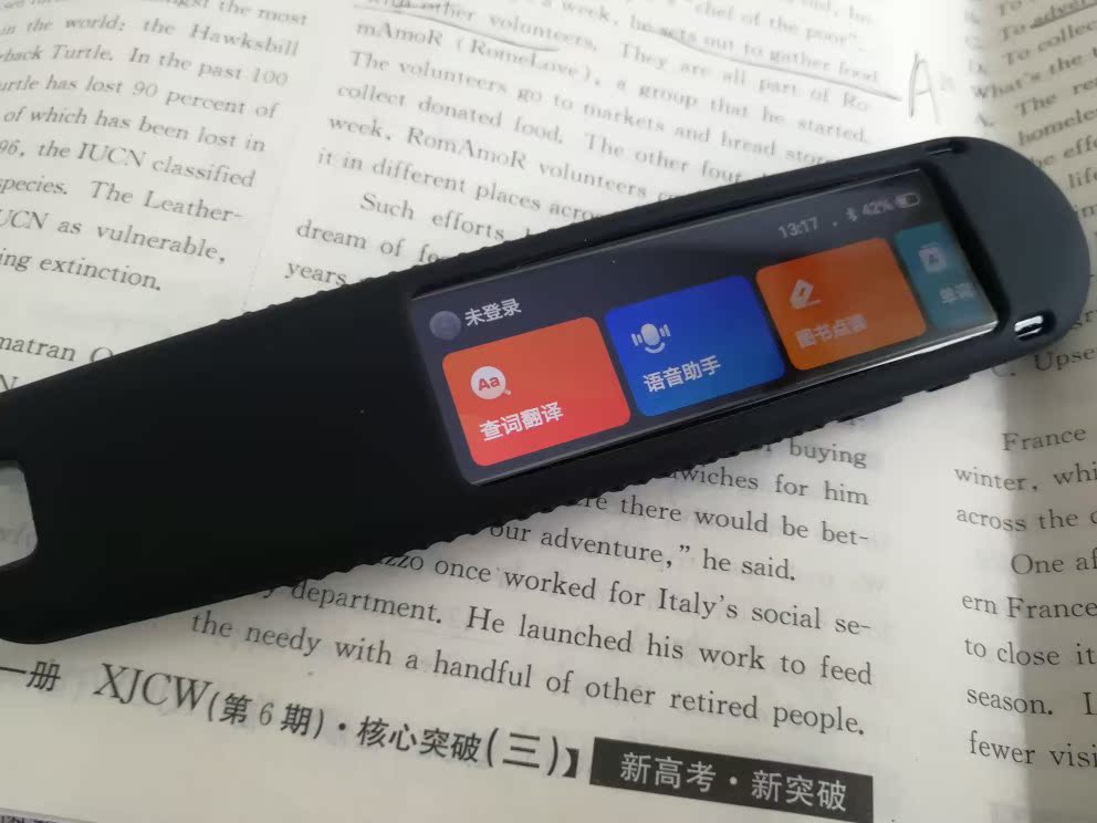 可以离线使用很方便,做阅读的时候查单词节省了许多时间,也可以连接耳机自习时候用,就是每次关机重启以后都要重新搜索蓝牙设备配对