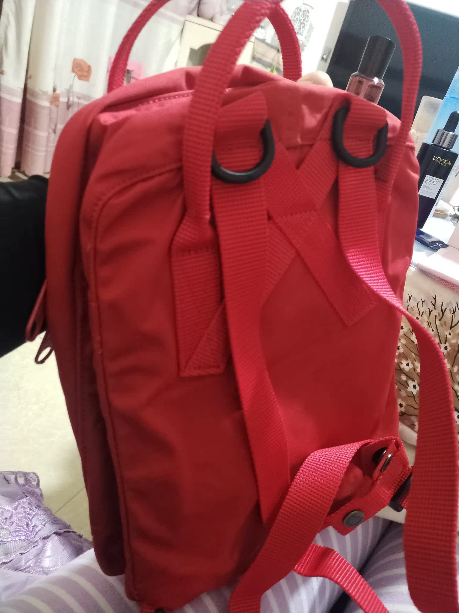 颜色没有照片深,绳子短一些,也是在可以接受的范围内,其他都还行,轻便,通勤也适合。