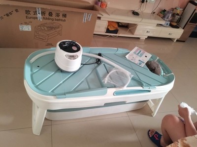 洗澡盆收到了,刚刚打开觉得很大,进去试了一下一点不大,儿子迫不及待的要洗澡,材质很好折叠也很容易,家里有男士的话建议还是买大一点的,折叠后不占空间!美观实用!汗蒸也非常好用,出气非常快,温度很高