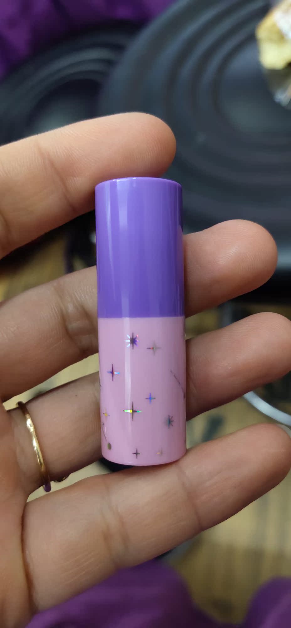 有很香的水蜜桃味nice,送的口红也很可爱小小的