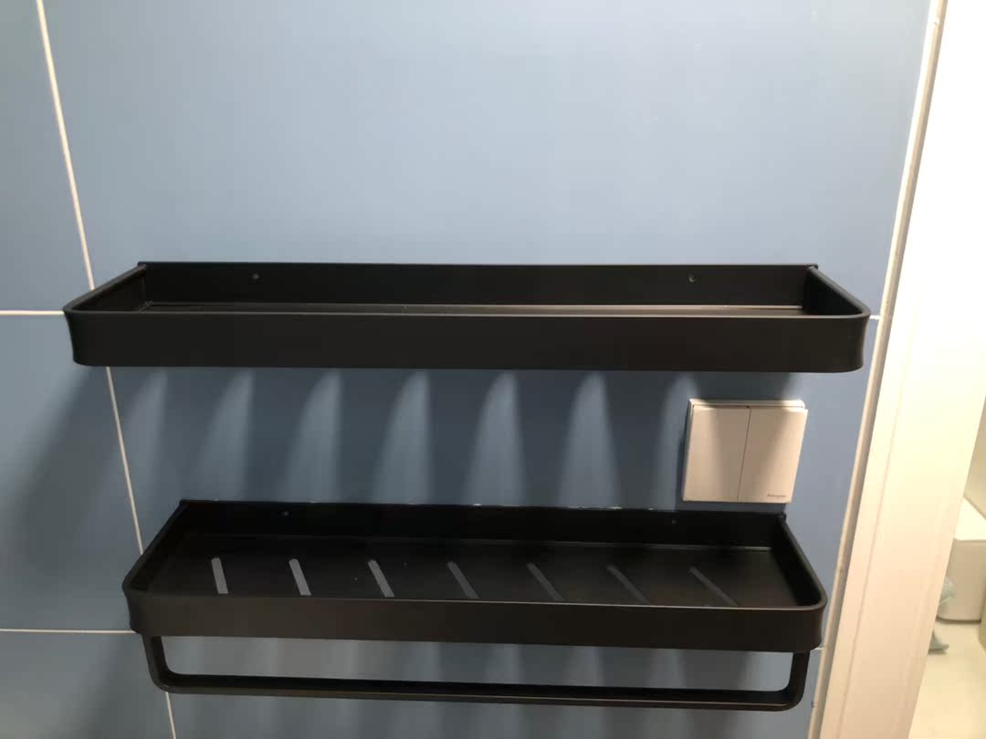 真心评价:架子非常厚实,质量和手感都很棒。黑色跟我家洗漱台的绿色简直绝配。免钉安装很方便,客服态度也很好。强烈推荐。