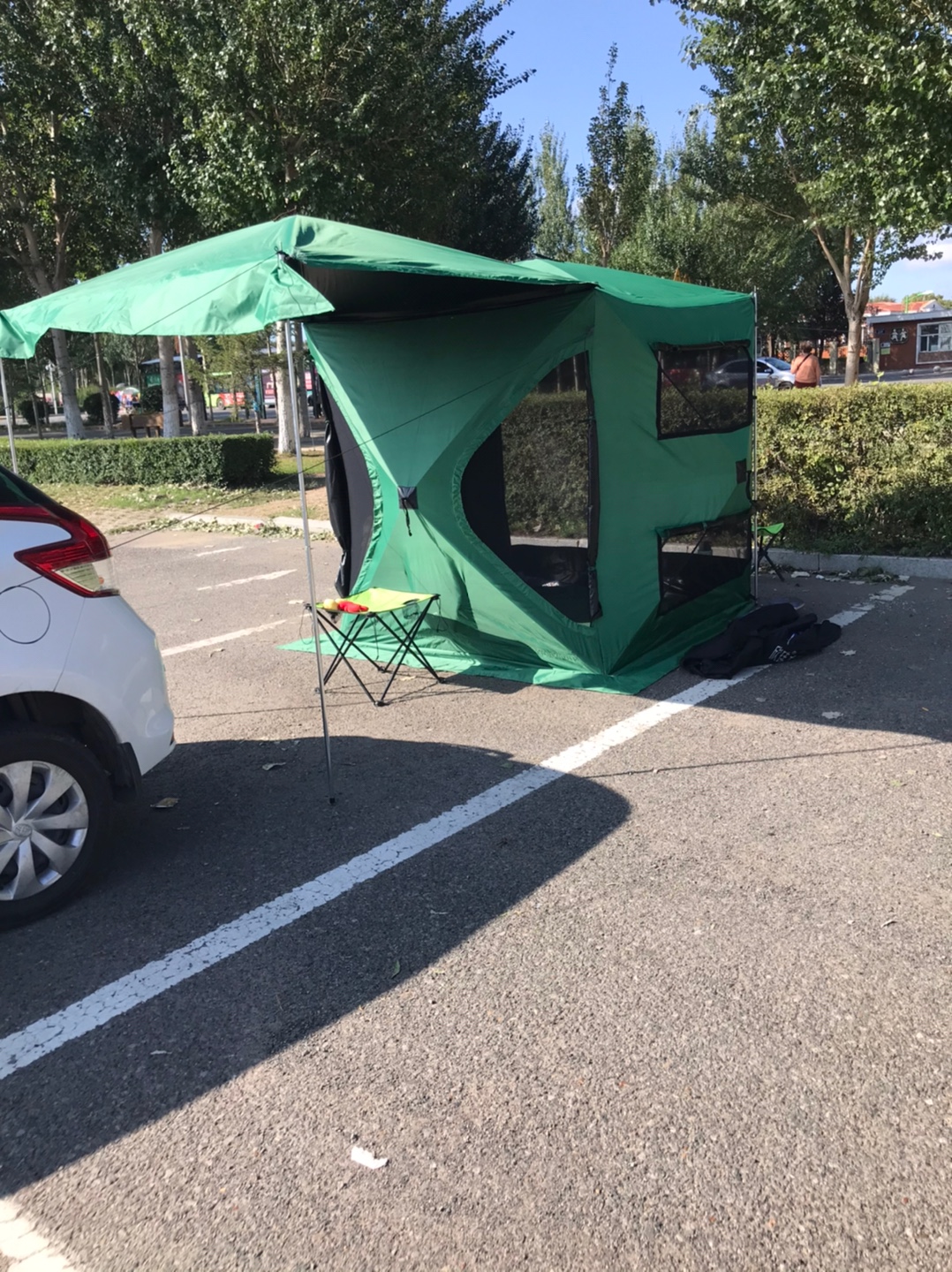 收到帐篷,既能当车边屋车边厅,还可以做遮阳棚。产品功能齐全!商家考虑的比较周到,送了绳子,防雨布,防潮垫,还有帐篷灯等!布料挺厚实的 很实用的帐篷,
