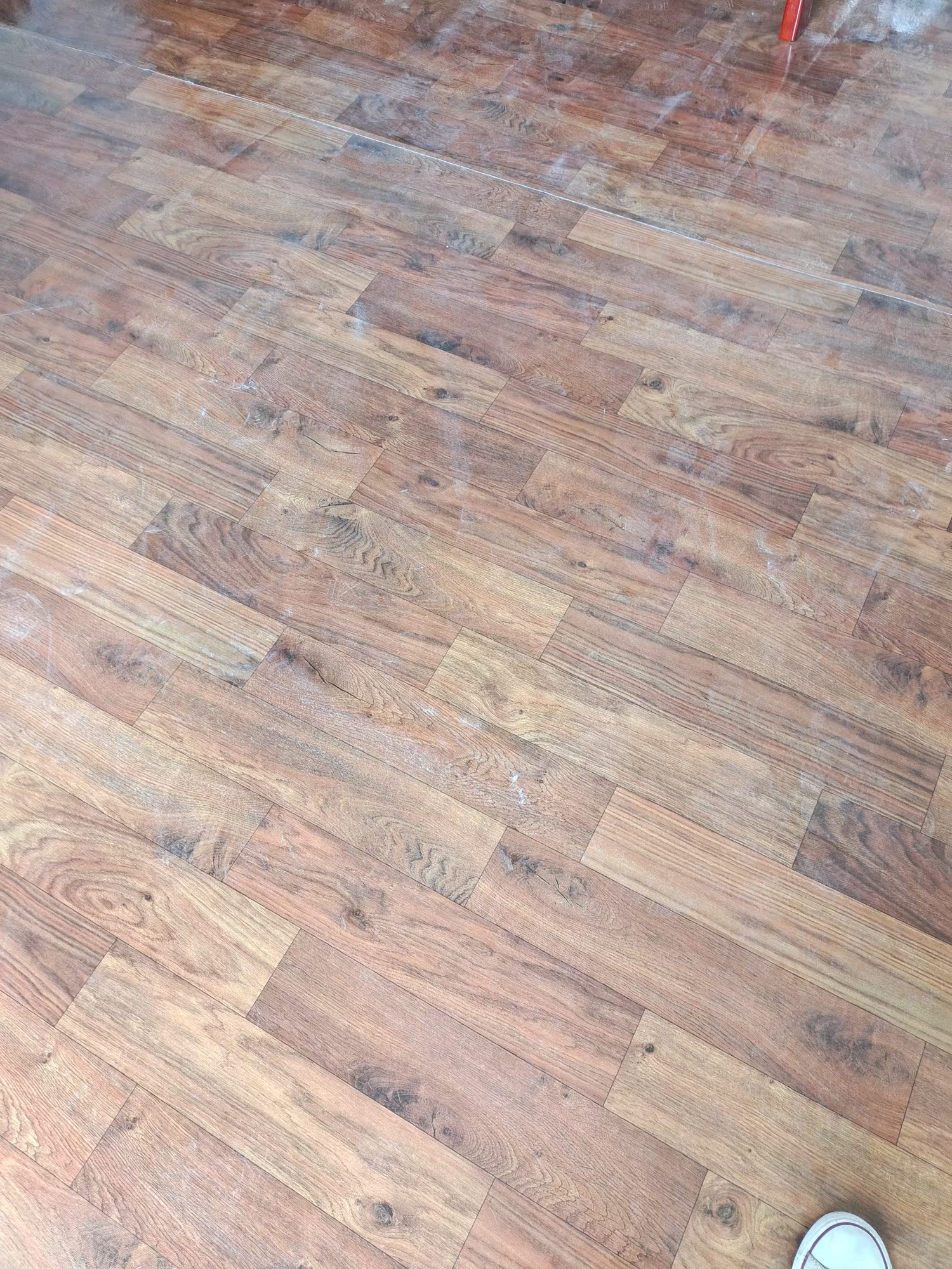 地板革收到了,刚刚铺好,没有异味,很好铺,赞?!