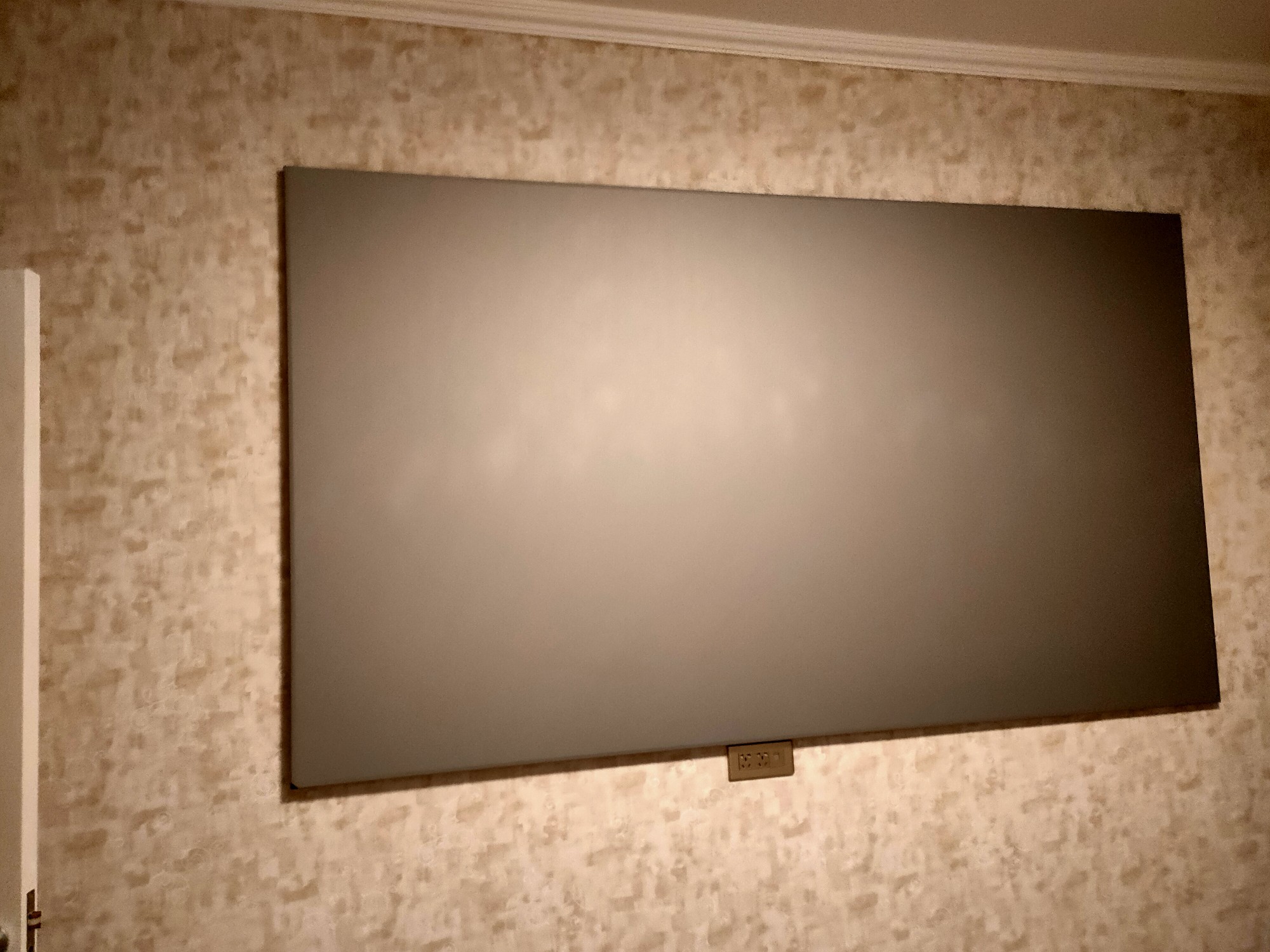 电视机很大,还没实际观看过屏幕的显示效果,总体还是很好,买这款电视经历了一波三折,最后还是挺满意的,新家用,要壁挂的话费用还得花几百
