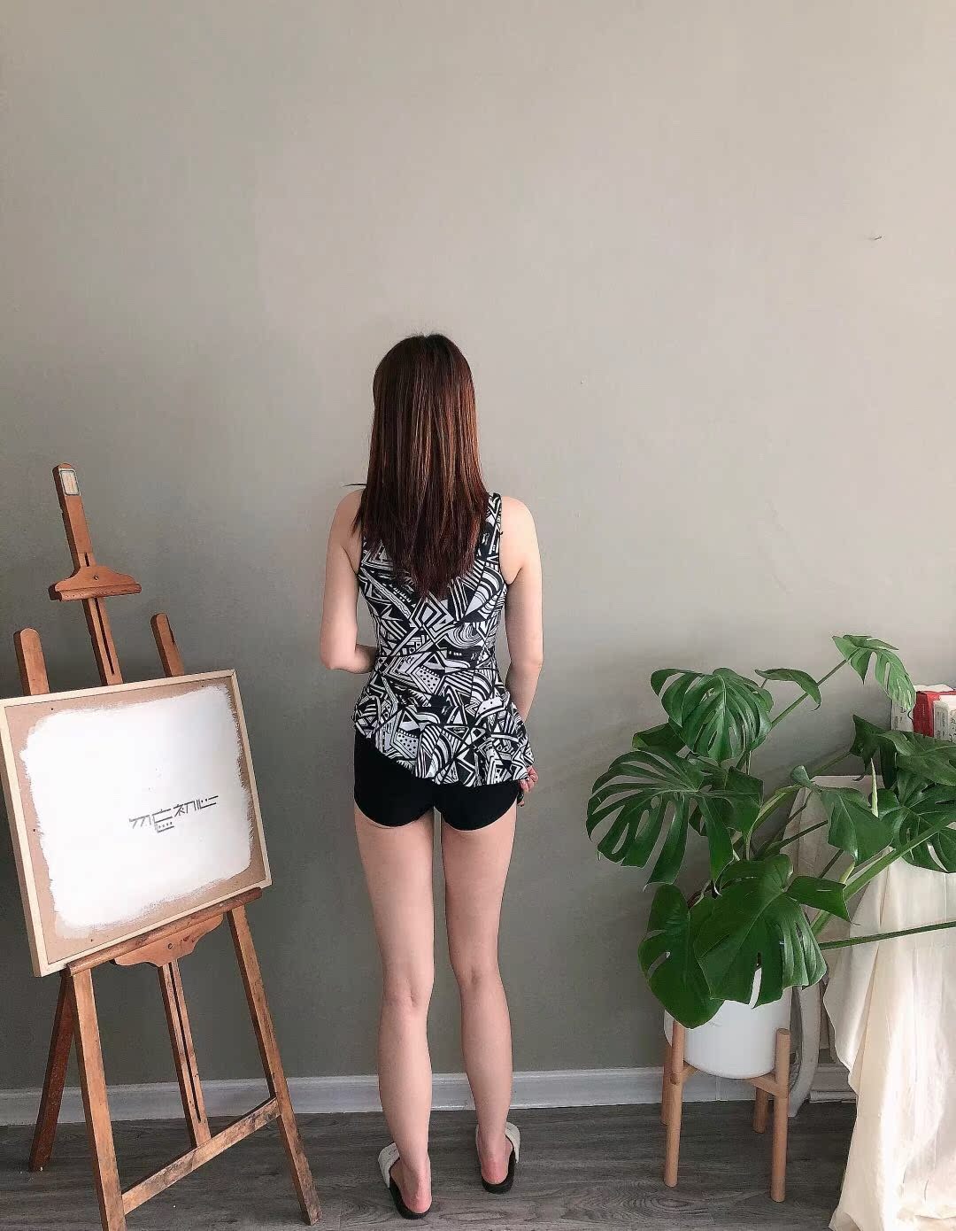 样式不错,也挺遮肉。就是面料弹性差了,做工也不太好,针角线太稀松,自己手工又缝了一遍。肩膀处老裹边,拉不直。