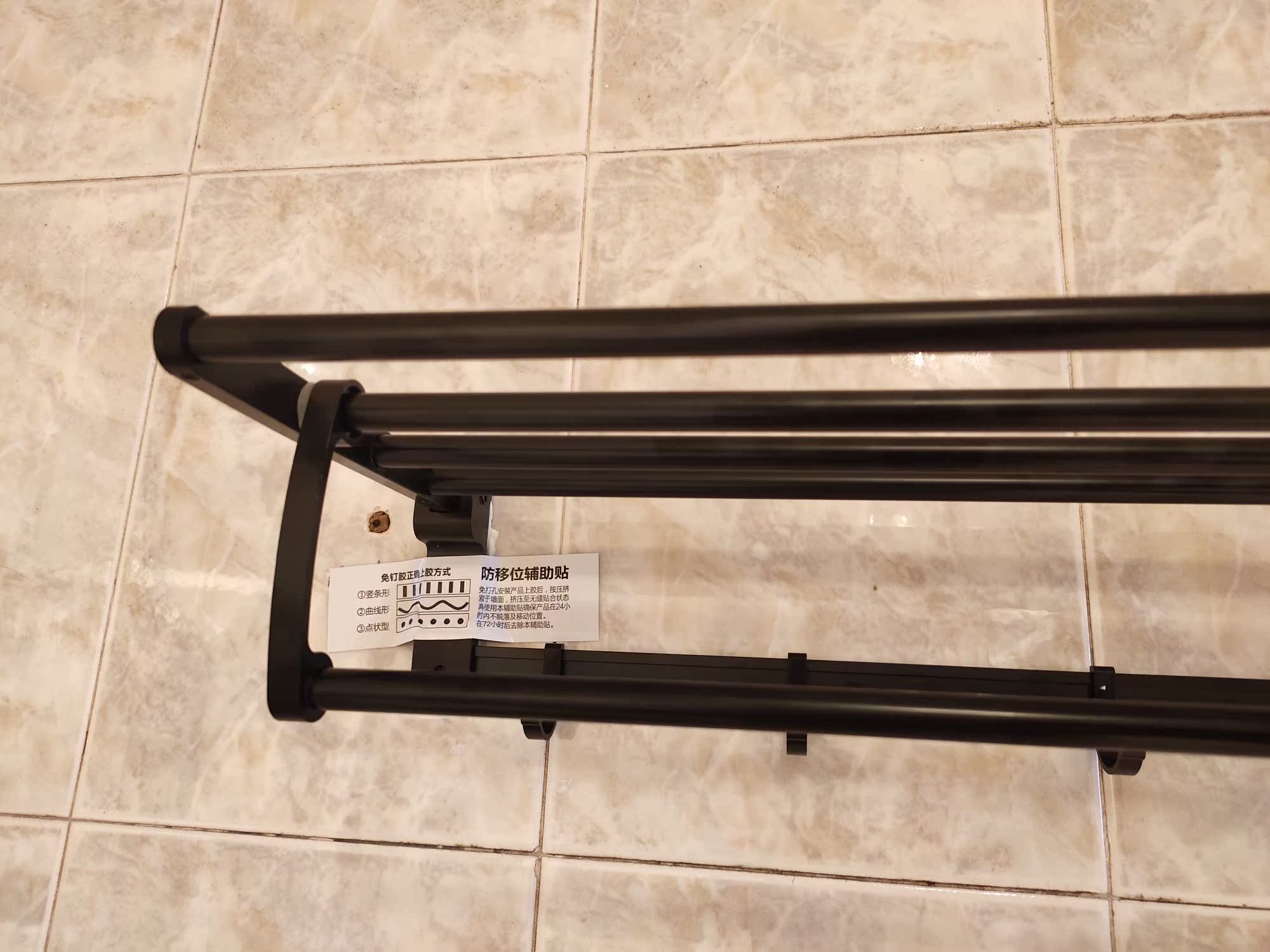 浴巾架收到了,黑色质量不错,放在卫生间挂毛巾用,节约空间。昨天还没装。等老公帮安装固定,操作简单易学,物流发货速度也很快,满意!